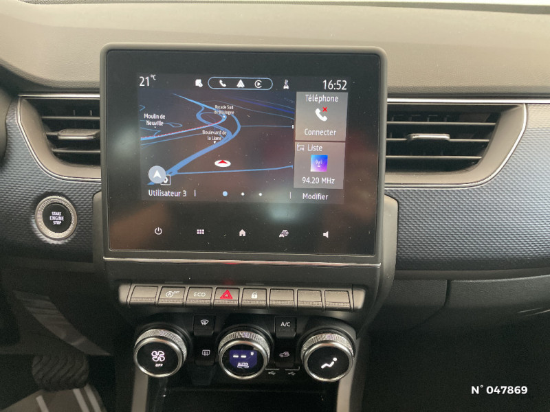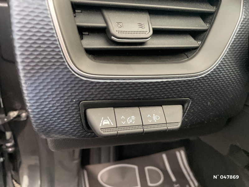 Tableau de bord avec écran couleur 4,2'' et compteurs analogiques / Purificateur d'air / Système ISOFIX (i-Size) aux places AR (latérales) / Alerte de survitesse combinéà la vitesse limite de la navigation / Compatibilité Apple CarPlay Wifi / Jantes alliage 17" Bahamas diamantées noires / Bouton d'appel d'urgence R-Call / Sellerie tissu Noir Titane / Volant gainé en similicuir Soft Touch / Boitier connect AIVC / Commutation automatique des feux de route/croisement / Kit de gonflage et de réparation des pneumatiques / Harmonie foncé / Carte Renault avec accès et démarrage mains libres avec fermeture à l'éloignement / Allumage automatique des phares et des essuis-glace avec capteur de pluie et de luminosité / Feux de jour à LED avec signature lumineuse C-Shape / Programme eco mode / Aérateurs aux places AR / Lève-vitres AR électriques avec fonction anti-pincement / Coques de rétroviseurs ton caisse / Indicateur de changement de vitesse / Alerte Distance Sécurité / Alerte d'oubli de ceinture de sécurité / Compartimentage de coffre / Projecteurs AV full LED Pure Vision / Navigation embarquée avec cartographie Europe / Freinage actif d'urgence avec détection piétons et cyclistes