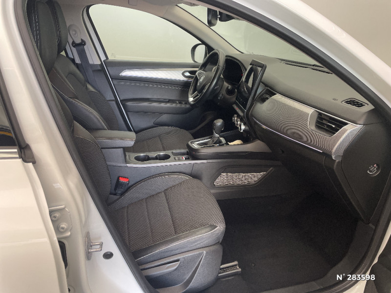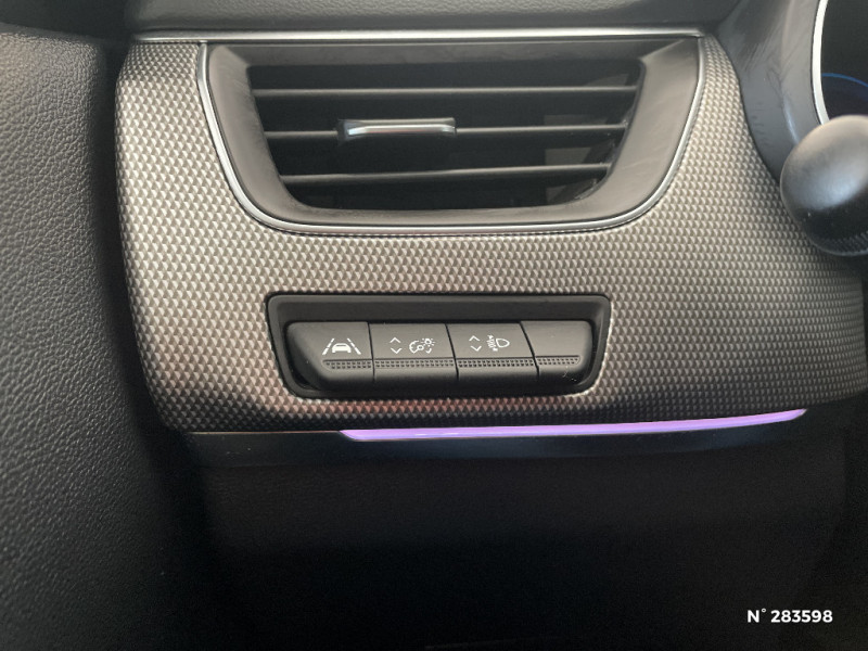 Commutation automatique des feux de route/croisement / Kit de gonflage et de réparation des pneumatiques / Harmonie foncé / Système ISOFIX (i-Size) aux places latérales AR et passager AV / Carte Renault avec accès et démarrage mains libres avec fermeture à l'éloignement / Renault Multi-sense / Alerte de survitesse combinéà la vitesse limite de la navigation / Allumage automatique des phares et des essuis-glace avec capteur de pluie et de luminosité / Avertisseur de sortie de stationnement / Feux de jour à LED avec signature lumineuse C-Shape / Programme eco mode / Aérateurs aux places AR / Lève-vitres AR électriques avec fonction anti-pincement / Purificateur d'air / Jantes alliage 18" Pasadena diamantées noires / Freinage actif d'urgence avec détection piétons et cyclistes / Bouton d'appel d'urgence R-Call / Sellerie tissu/TEP Noir Titane / Boitier connect AIVC / Système multimédia EASY LINK avec écran tactile 9,3", navigation, Bluetooth / Tableau de bord avec écran numérique couleur 7'' / Sellerie similicuir-tissu Noir Titane / Easy link avec écran tactile 9.3", navigation, réplication smartphone, Bluetooth / Système ISOFIX (i-Size) aux places AR (latérales) / Volant cuir pleine fleur / Rétroviseur intérieur électrochrome / Coques de rétroviseurs ton caisse / Indicateur de changement de vitesse / Eclairage d'ambiance / Alerte Distance Sécurité / Alerte d'oubli de ceinture de sécurité / Banquette AR avec accoudoir central / Compartimentage de coffre / Projecteurs AV full LED Pure Vision