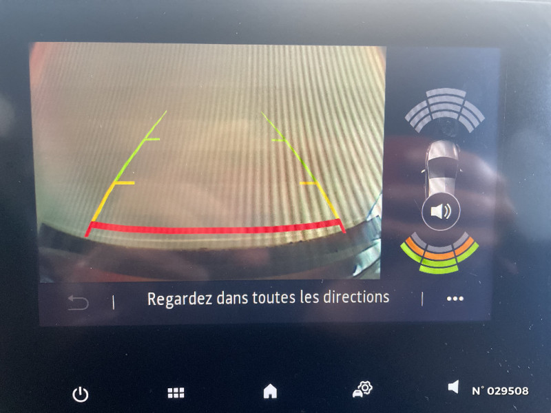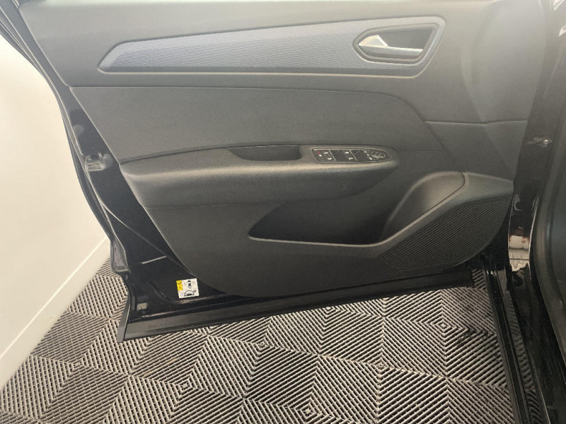 Lève-vitres AR électriques avec fonction anti-pincement / Purificateur d'air / Freinage actif d'urgence avec détection piétons et cyclistes / Bouton d'appel d'urgence R-Call / Sellerie tissu Noir Titane / Volant gainé en similicuir Soft Touch / Boitier connect AIVC / Navigation embarquée avec cartographie Europe / Tableau de bord avec écran couleur 4,2'' et compteurs analogiques / Système ISOFIX (i-Size) aux places AR (latérales) / Alerte de survitesse combinéà la vitesse limite de la navigation / Compatibilité Apple CarPlay Wifi / Projecteurs AV LED pure vision / Jantes alliage 17" Bahamas diamantées noires / Kit de gonflage et de réparation des pneumatiques / Harmonie foncé / Carte Renault avec accès et démarrage mains libres avec fermeture à l'éloignement / Allumage automatique des phares et des essuis-glace avec capteur de pluie et de luminosité / Compartimentage de coffre / Projecteurs AV full LED Pure Vision / Commutation automatique des feux de route/croisement / Feux de jour à LED avec signature lumineuse C-Shape / Programme eco mode / Aérateurs aux places AR / Alerte d'oubli de ceinture de sécurité / Coques de rétroviseurs ton caisse / Indicateur de changement de vitesse / Alerte Distance Sécurité