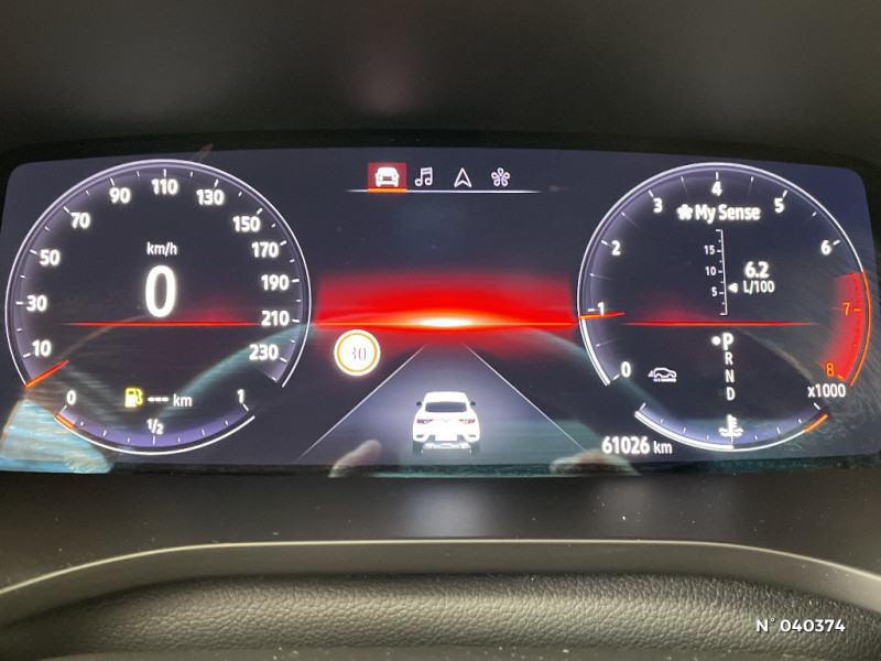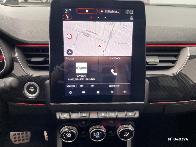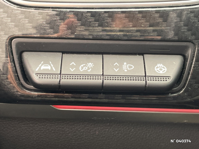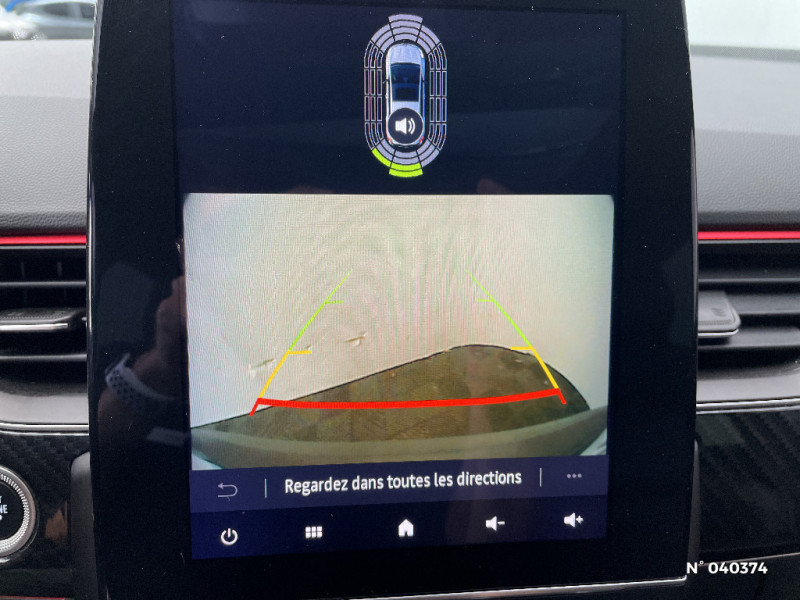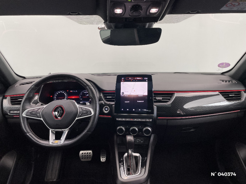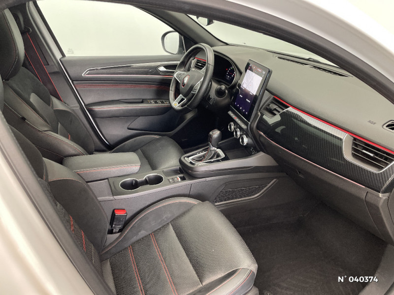 Indicateur de changement de vitesse / Kit de gonflage et de réparation des pneumatiques / Harmonie foncé / Design exterieur RS-Line / Eclairage d'ambiance / Alerte Distance Sécurité / Alerte d'oubli de ceinture de sécurité / Design intérieur RS-Line / Carte Renault avec accès et démarrage mains libres avec fermeture à l'éloignement / Renault Multi-sense / Allumage automatique des phares et des essuis-glace avec capteur de pluie et de luminosité / Avertisseur de sortie de stationnement / Détection d'obstacle latérale / Feux de jour à LED avec signature lumineuse C-Shape / Programme eco mode / Rétroviseur intérieur électrochrome sans contour / Aérateurs aux places AR / Volant chauffant / Banquette AR avec accoudoir central / Compartimentage de coffre / Projecteurs AV full LED Pure Vision / Easy Park Assist / Commutation automatique des feux de route/croisement / Lève-vitres AR électriques avec fonction anti-pincement / Purificateur d'air / Coques de rétroviseurs extérieures noires (avec Toit Noir) / Freinage actif d'urgence avec détection piétons et cyclistes / Bouton d'appel d'urgence R-Call / Sellerie mixte cuir-suédine surpiqués rouge / Signature R.S. Line / Volant cuir pleine fleur / Boitier connect AIVC / Jantes alliage 18" Silverstone diamantées exclusives R.S. Line avec insert Rouge / Tableau de bord avec écran numérique et personnalisable 10" / Easy link avec écran tactile 9.3", navigation, réplication smartphone, Bluetooth / Système ISOFIX (i-Size) aux places AR (latérales) / Alerte de survitesse combinéà la vitesse limite de la navigation / Compatibilité Apple CarPlay Wifi / Frein de parking électrique avec fonction Auto-Hold / Coques de rétroviseurs extérieures noires