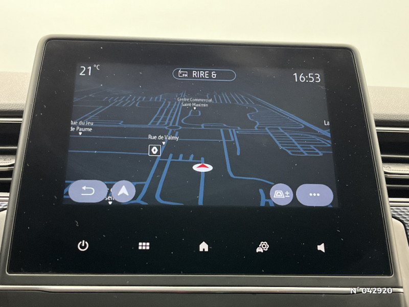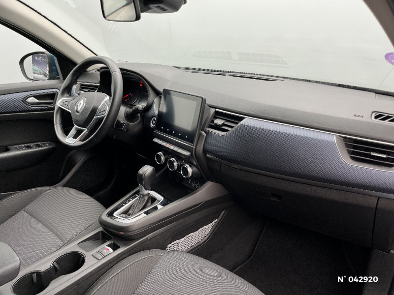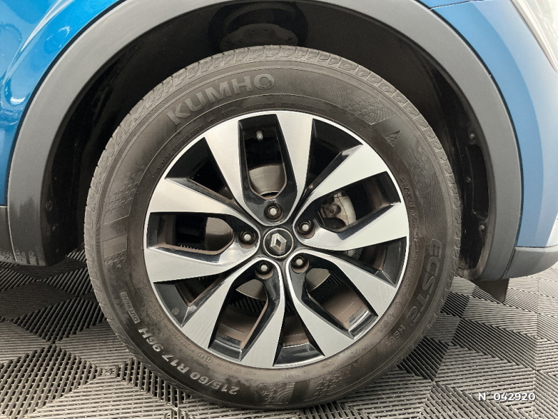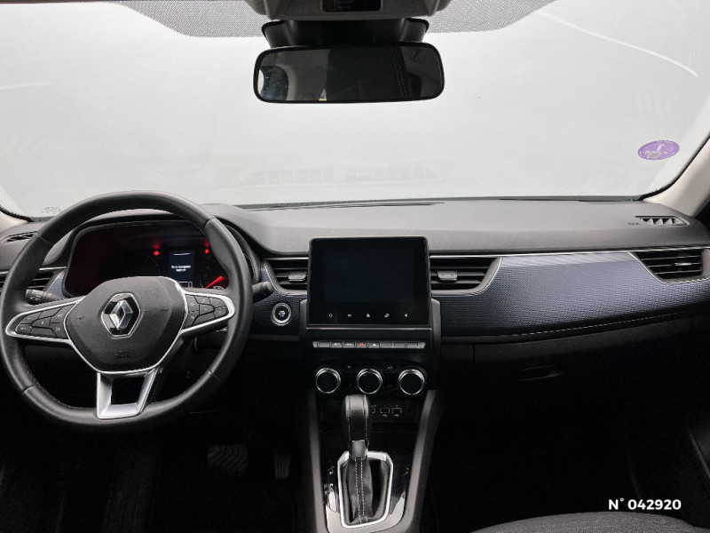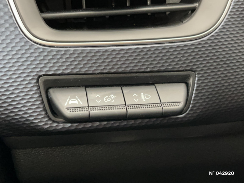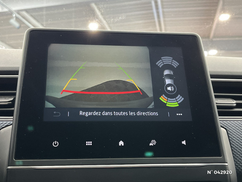 Compartimentage de coffre / Projecteurs AV full LED Pure Vision / Commutation automatique des feux de route/croisement / Kit de gonflage et de réparation des pneumatiques / Harmonie foncé / Carte Renault avec accès et démarrage mains libres avec fermeture à l'éloignement / Allumage automatique des phares et des essuis-glace avec capteur de pluie et de luminosité / Feux de jour à LED avec signature lumineuse C-Shape / Programme eco mode / Lève-vitres AR électriques avec fonction anti-pincement / Purificateur d'air / Freinage actif d'urgence avec détection piétons et cyclistes / Bouton d'appel d'urgence R-Call / Sellerie tissu Noir Titane / Volant gainé en similicuir Soft Touch / Boitier connect AIVC / Aérateurs aux places AR / Coques de rétroviseurs ton caisse / Indicateur de changement de vitesse / Alerte Distance Sécurité / Alerte d'oubli de ceinture de sécurité / Navigation embarquée avec cartographie Europe / Tableau de bord avec écran couleur 4,2'' et compteurs analogiques / Système ISOFIX (i-Size) aux places AR (latérales) / Alerte de survitesse combinéà la vitesse limite de la navigation / Compatibilité Apple CarPlay Wifi / Jantes alliage 17" Bahamas diamantées noires
