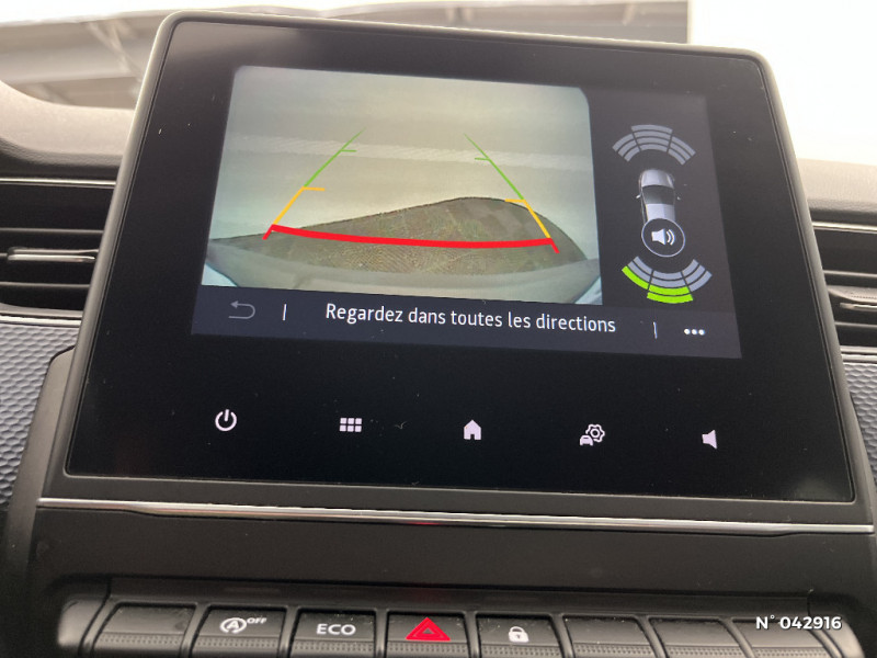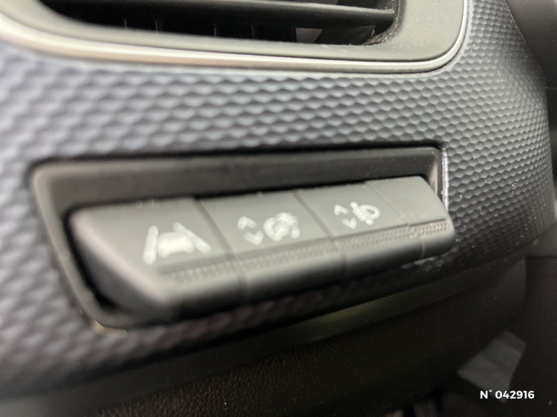 Projecteurs AV full LED Pure Vision / Coques de rétroviseurs ton caisse / Indicateur de changement de vitesse / Alerte Distance Sécurité / Alerte d'oubli de ceinture de sécurité / Compartimentage de coffre / Commutation automatique des feux de route/croisement / Kit de gonflage et de réparation des pneumatiques / Harmonie foncé / Carte Renault avec accès et démarrage mains libres avec fermeture à l'éloignement / Allumage automatique des phares et des essuis-glace avec capteur de pluie et de luminosité / Feux de jour à LED avec signature lumineuse C-Shape / Programme eco mode / Aérateurs aux places AR / Lève-vitres AR électriques avec fonction anti-pincement / Purificateur d'air / Freinage actif d'urgence avec détection piétons et cyclistes / Bouton d'appel d'urgence R-Call / Sellerie tissu Noir Titane / Volant gainé en similicuir Soft Touch / Boitier connect AIVC / Navigation embarquée avec cartographie Europe / Tableau de bord avec écran couleur 4,2'' et compteurs analogiques / Système ISOFIX (i-Size) aux places AR (latérales) / Alerte de survitesse combinéà la vitesse limite de la navigation / Compatibilité Apple CarPlay Wifi / Jantes alliage 17" Bahamas diamantées noires