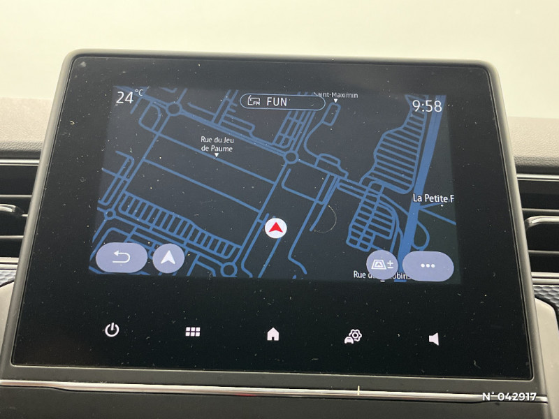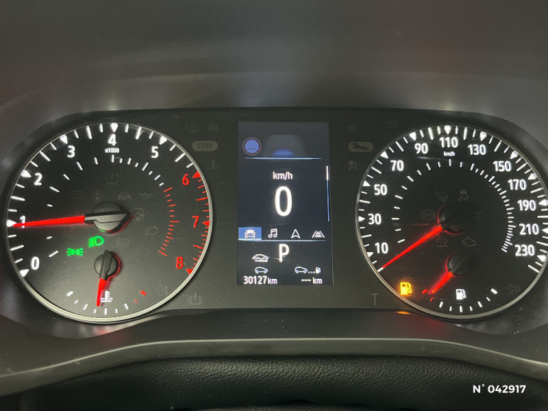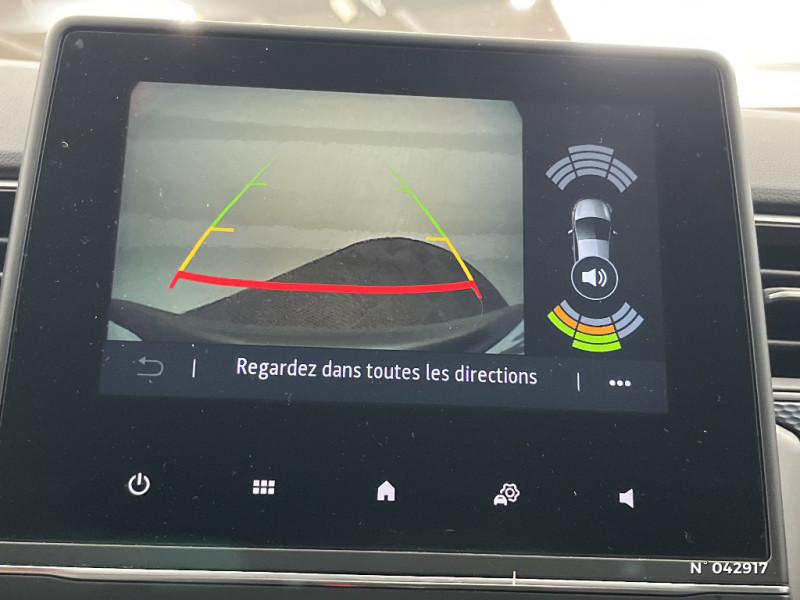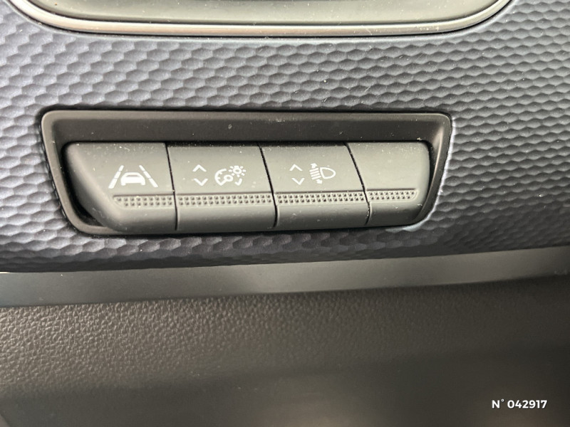 Coques de rétroviseurs ton caisse / Indicateur de changement de vitesse / Alerte Distance Sécurité / Alerte d'oubli de ceinture de sécurité / Compartimentage de coffre / Projecteurs AV full LED Pure Vision / Commutation automatique des feux de route/croisement / Kit de gonflage et de réparation des pneumatiques / Harmonie foncé / Carte Renault avec accès et démarrage mains libres avec fermeture à l'éloignement / Allumage automatique des phares et des essuis-glace avec capteur de pluie et de luminosité / Feux de jour à LED avec signature lumineuse C-Shape / Programme eco mode / Aérateurs aux places AR / Lève-vitres AR électriques avec fonction anti-pincement / Purificateur d'air / Freinage actif d'urgence avec détection piétons et cyclistes / Bouton d'appel d'urgence R-Call / Sellerie tissu Noir Titane / Volant gainé en similicuir Soft Touch / Boitier connect AIVC / Navigation embarquée avec cartographie Europe / Tableau de bord avec écran couleur 4,2'' et compteurs analogiques / Système ISOFIX (i-Size) aux places AR (latérales) / Alerte de survitesse combinéà la vitesse limite de la navigation / Compatibilité Apple CarPlay Wifi / Jantes alliage 17" Bahamas diamantées noires