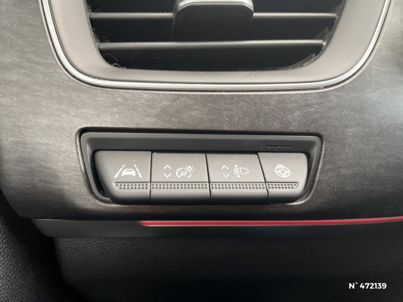 Ciel de toit gris / Commutation automatique des feux de route/croisement / Compartimentage de coffre / Compatibilité Apple CarPlay Wifi / Coques de rétroviseurs extérieures ton caisse / Freinage actif d'urgence avec détection piétons et cyclistes / Harmonie intérieure foncée / Indicateur de changement de vitesse / Jantes alliage 17'' Bahamas gris pyrite / Kit de gonflage et de réparation des pneumatiques / Lève-vitres AR électriques avec fonction anti-pincement / Aérateurs aux places AR / Navigation embarquée avec cartographie Europe / Alerte de distance de sécurité / Alerte de survitesse combinéà la vitesse limite de la navigation / Allumage automatique des phares et des essuis-glace avec capteur de pluie et de luminosité / Boitier connect AIVC / Bouton d'appel d'urgence R-Call / Carte Renault avec accès et démarrage mains libres avec fermeture à l'éloignement / Système ISOFIX (i-Size) aux places AR (latérales) / Tableau de bord avec écran numérique couleur 7'' / Plancher de coffre amovible / Programme eco mode / Projecteurs AV full LED Pure Vision / Projecteurs AV LED pure vision / Purificateur d'air / Sans rangement de coffre / Sellerie tissu Noir Titane