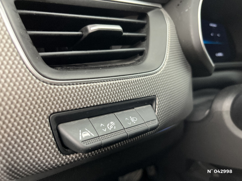 Tableau de bord avec écran numérique et personnalisable 10" / Sellerie similicuir-tissu Noir Titane / Easy link avec écran tactile 9.3", navigation, réplication smartphone, Bluetooth / Système ISOFIX (i-Size) aux places AR (latérales) / Alerte de survitesse combinéà la vitesse limite de la navigation / Compatibilité Apple CarPlay Wifi / Frein de parking électrique avec fonction Auto-Hold / Jantes alliage 18" Pasadena diamantées noires / Aérateurs aux places AR / Lève-vitres AR électriques avec fonction anti-pincement / Purificateur d'air / Freinage actif d'urgence avec détection piétons et cyclistes / Bouton d'appel d'urgence R-Call / Volant gainé en similicuir Soft Touch / Boitier connect AIVC / Banquette AR avec accoudoir central / Compartimentage de coffre / Projecteurs AV full LED Pure Vision / Commutation automatique des feux de route/croisement / Kit de gonflage et de réparation des pneumatiques / Harmonie foncé / Carte Renault avec accès et démarrage mains libres avec fermeture à l'éloignement / Renault Multi-sense / Allumage automatique des phares et des essuis-glace avec capteur de pluie et de luminosité / Avertisseur de sortie de stationnement / Feux de jour à LED avec signature lumineuse C-Shape / Programme eco mode / Rétroviseur intérieur électrochrome / Coques de rétroviseurs ton caisse / Indicateur de changement de vitesse / Eclairage d'ambiance / Alerte Distance Sécurité / Alerte d'oubli de ceinture de sécurité