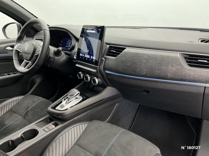 Ciel de toit noir / Commutation automatique des feux de route/croisement / Compartimentage de coffre / Compatibilité Apple CarPlay Wifi / Console centrale avec levier de vitesse e-shifter / Coques de rétroviseurs extérieures noires / Design esprit Alpine extérieur / Indicateur de changement de vitesse / Jantes alliage 19" esprit Alpine / Kit de gonflage et de réparation des pneumatiques / Lame métallique grise sur bouclier avant inspirée de l'univers de la Formule 1 / Lame métallique sur bouclier AV inspirée de l'univers de la Formule 1 / Lève-vitres AR électriques avec fonction anti-pincement / Plancher de coffre amovible / Programme eco mode / Projecteurs AV full LED Pure Vision / Purificateur d'air / Renault Multi-sense / Rétroviseur intérieur électrochrome sans contour / Sans rangement de coffre / Sellerie mixte textile enduit grainé - suédine avec surpiqures esprit Alpine / Sièges AV électriques avec réglage en hauteur, siège conducteur avec réglage lombaire / Système ISOFIX (i-Size) aux places AR (latérales) / Système multimédia easy link connecté avec écran tactile 9,3, radio DAB, navigation embarquée / Tableau de bord avec écran numérique et personnalisable 10" / Volant chauffant / Volant textile enduit grainé perforé chauffant / Aérateurs aux places AR / Alerte de distance de sécurité / Alerte de survitesse combinéà la vitesse limite de la navigation / Allumage automatique des phares et des essuis-glace avec capteur de pluie et de luminosité / Design esprit Alpine intérieur / Double canule d'échappement noir brillant / Easy link avec écran tactile 9.3", navigation, réplication smartphone, Bluetooth / Eclairage d'ambiance / Feux de jour à LED avec signature lumineuse C-Shape / Frein de parking électrique avec fonction Auto-Hold / Freinage actif d'urgence avec détection piétons et cyclistes / Harmonie intérieure foncée / Avertisseur de sortie de stationnement / Banquette AR avec accoudoir central / Boitier connect AIVC / Bouton d'appel d'urgence R-Call / Carte Renault avec accès et démarrage mains libres avec fermeture à l'éloignement / Centrage dans la voie (active driver assist)