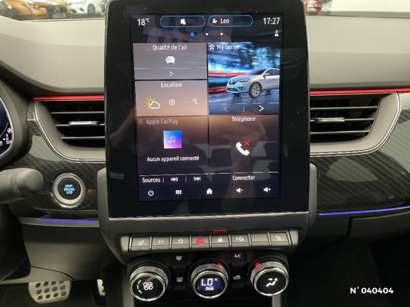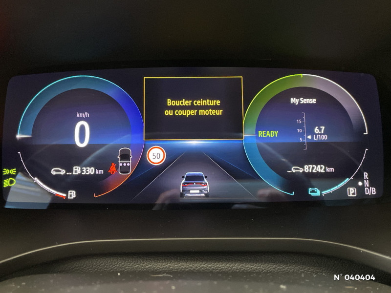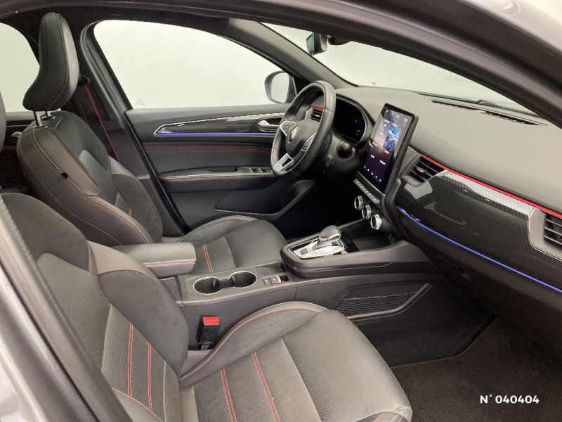 Coques de rétroviseurs extérieures noires (avec Toit Noir) / Kit de gonflage et de réparation des pneumatiques / Harmonie foncé / Système ISOFIX (i-Size) aux places latérales AR et passager AV / Design exterieur RS-Line / Design intérieur RS-Line / Carte Renault avec accès et démarrage mains libres avec fermeture à l'éloignement / Renault Multi-sense / Alerte de survitesse combinéà la vitesse limite de la navigation / Allumage automatique des phares et des essuis-glace avec capteur de pluie et de luminosité / Avertisseur de sortie de stationnement / Boite de vitesse E shifter / Banquette AR avec accoudoir central / Compartimentage de coffre / Projecteurs AV full LED Pure Vision / Easy Park Assist / Commutation automatique des feux de route/croisement / Détection d'obstacle latérale / Feux de jour à LED avec signature lumineuse C-Shape / Programme eco mode / Rétroviseur intérieur électrochrome sans contour / Indicateur de changement de vitesse / Eclairage d'ambiance / Alerte Distance Sécurité / Alerte d'oubli de ceinture de sécurité / Volant chauffant / Freinage actif d'urgence avec détection piétons et cyclistes / Bouton d'appel d'urgence R-Call / Sellerie mixte cuir-suédine surpiqués rouge / Signature R.S. Line / Volant cuir pleine fleur / Boitier connect AIVC / Système multimédia EASY LINK avec écran tactile 9,3", navigation, Bluetooth / Tableau de bord avec écran numérique couleur 7'' / Jantes alliage 18" Silverstone diamantées exclusives R.S. Line avec insert Rouge / Easy link avec écran tactile 9.3", navigation, réplication smartphone, Bluetooth / Système ISOFIX (i-Size) aux places AR (latérales) / Aérateurs aux places AR / Lève-vitres AR électriques avec fonction anti-pincement / Purificateur d'air