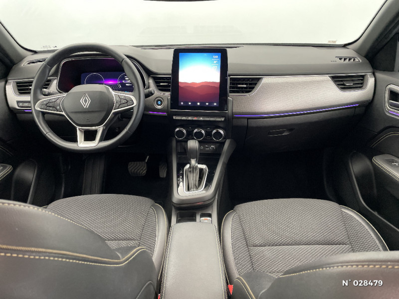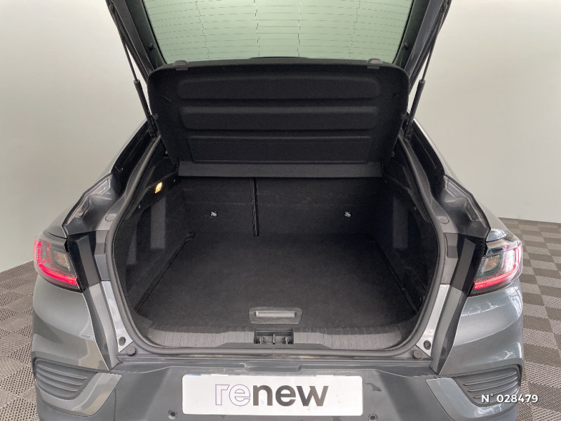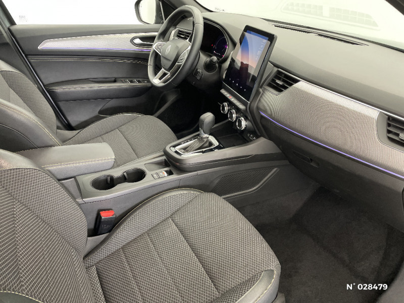 Sellerie textile enduit grainé - tissu noir / Plancher de coffre amovible / Système multimédia easy link connecté avec écran tactile 9,3, radio DAB, navigation embarquée / Alerte détection de fatigue / Lame métallique sur bouclier AV inspirée de l'univers de la Formule 1 / Détection intelligente des limitations de vitesse et prévention survitesse / My Safety switch (raccourci vers configuration personnalisée des aides à la conduite) / Sans centrage dans la voie / Prédisposition éthylotest / Rétroviseur intérieur électrochrome / Indicateur de changement de vitesse / Eclairage d'ambiance / Alerte Distance Sécurité / Banquette AR avec accoudoir central / Projecteurs AV full LED Pure Vision / Kit de gonflage et de réparation des pneumatiques / Harmonie foncé / Commutation automatique des feux de route/croisement / Renault Multi-sense / Allumage automatique des phares et des essuis-glace avec capteur de pluie et de luminosité / Avertisseur de sortie de stationnement / Feux de jour à LED avec signature lumineuse C-Shape / Programme eco mode / Aérateurs aux places AR / Lève-vitres AR électriques avec fonction anti-pincement / Purificateur d'air / Freinage actif d'urgence avec détection piétons et cyclistes / Bouton d'appel d'urgence R-Call / Boitier connect AIVC / Carte Renault avec accès et démarrage mains libres avec fermeture à l'éloignement / Sans rangement de coffre / Système ISOFIX (i-Size) aux places AR (latérales) / Frein de parking électrique avec fonction Auto-Hold / Tableau de bord avec écran numérique et personnalisable 10" / Coques de rétroviseurs extérieures noires / Ciel de toit noir / Jantes alliage 18'' Silverstone diamantées