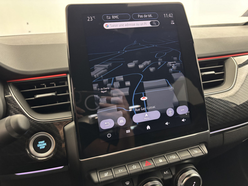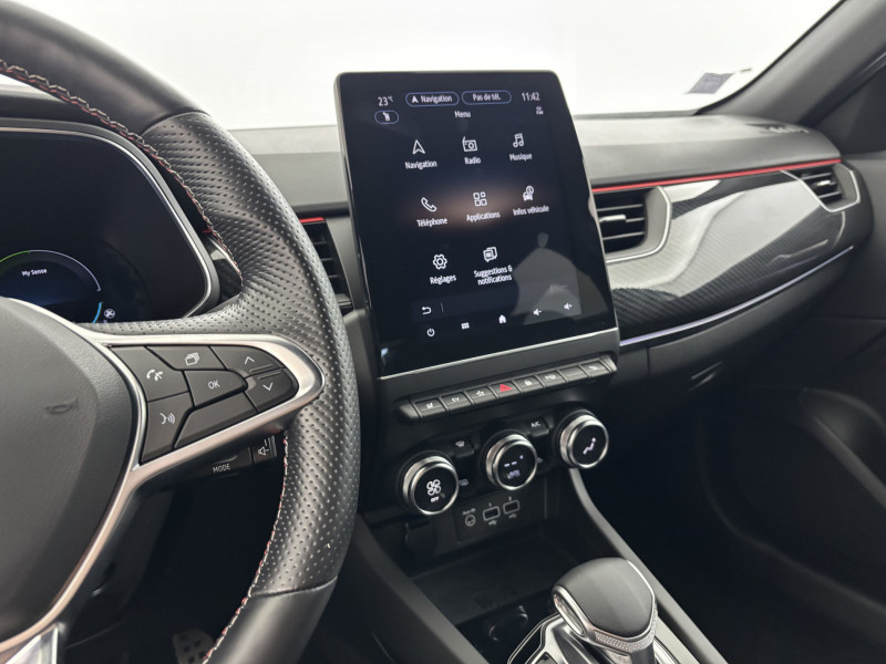 Eclairage d'ambiance / Feux de jour à LED avec signature lumineuse C-Shape / Freinage actif d'urgence avec détection piétons et cyclistes / Harmonie intérieure foncée / Indicateur de changement de vitesse / Jantes alliage 18" Silverstone diamantées exclusives R.S. Line avec insert Rouge / Kit de gonflage et de réparation des pneumatiques / Lève-vitres AR électriques avec fonction anti-pincement / Programme eco mode / Projecteurs AV full LED Pure Vision / Purificateur d'air / Renault Multi-sense / Aérateurs aux places AR / Alerte de distance de sécurité / Alerte de survitesse combinéà la vitesse limite de la navigation / Alerte d'oubli de ceinture de sécurité / Allumage automatique des phares et des essuis-glace avec capteur de pluie et de luminosité / Avertisseur de sortie de stationnement / Banquette AR avec accoudoir central / Boite de vitesse E shifter / Boitier connect AIVC / Bouton d'appel d'urgence R-Call / Carte Renault avec accès et démarrage mains libres avec fermeture à l'éloignement / Commutation automatique des feux de route/croisement / Compartimentage de coffre / Compartimentage de coffre / Coques de rétroviseurs extérieures noires (avec Toit Noir) / Design exterieur RS-Line / Design intérieur RS-Line / Détection d'obstacle latérale / Easy link avec écran tactile 9.3", navigation, réplication smartphone, Bluetooth / Easy Park Assist / Rétroviseur intérieur électrochrome sans contour / Sellerie mixte cuir-suédine surpiqués rouge / Signature R.S. Line / Système ISOFIX (i-Size) aux places AR (latérales) / Tableau de bord avec écran numérique couleur 7'' / Volant chauffant / Volant cuir pleine fleur /
