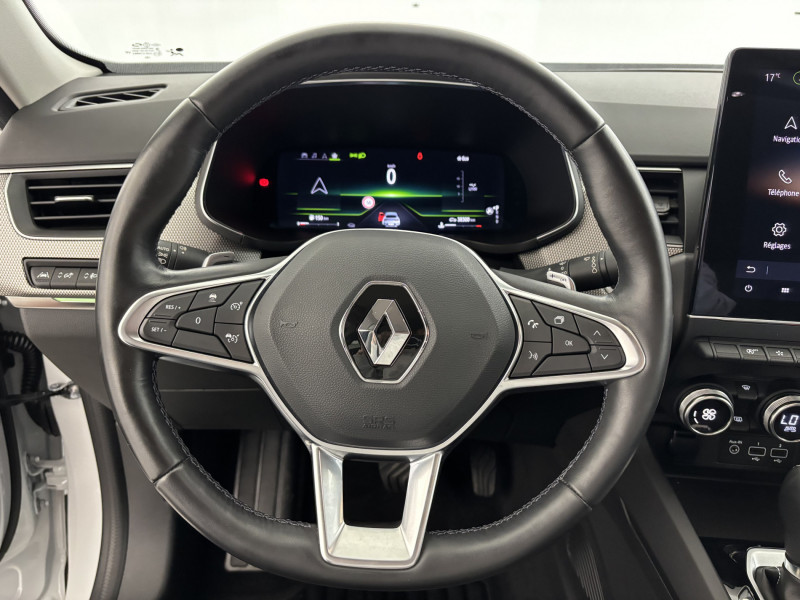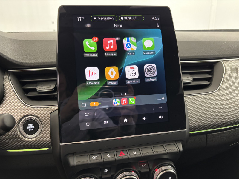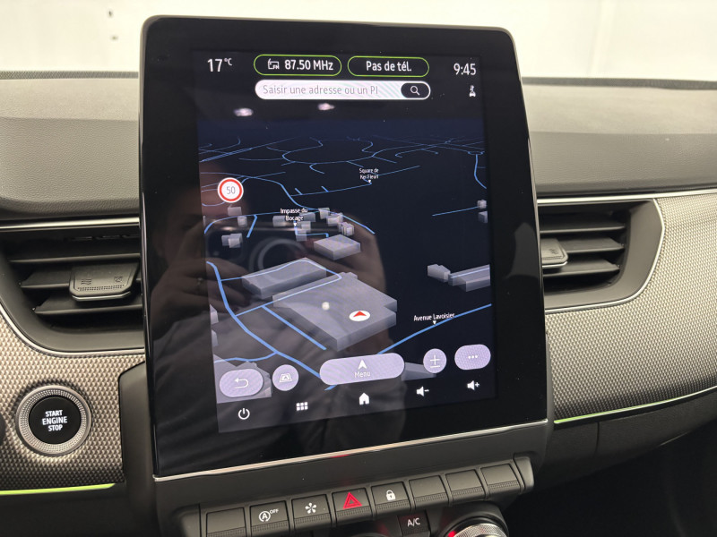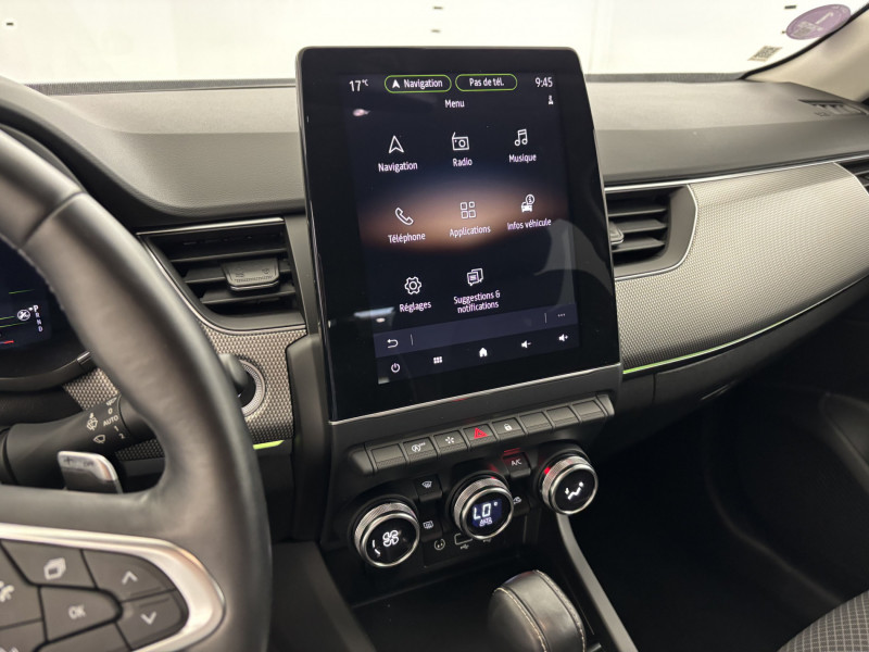 Aérateurs aux places AR / Alerte de distance de sécurité / Alerte de survitesse combinéà la vitesse limite de la navigation / Alerte d'oubli de ceinture de sécurité / Allumage automatique des phares et des essuis-glace avec capteur de pluie et de luminosité / Avertisseur de sortie de stationnement / Banquette AR avec accoudoir central / Boitier connect AIVC / Bouton d'appel d'urgence R-Call / Carte Renault avec accès et démarrage mains libres avec fermeture à l'éloignement / Commutation automatique des feux de route/croisement / Compartimentage de coffre / Compartimentage de coffre / Coques de rétroviseurs extérieures ton caisse / Easy link avec écran tactile 9.3", navigation, réplication smartphone, Bluetooth / Eclairage d'ambiance / Feux de jour à LED avec signature lumineuse C-Shape / Freinage actif d'urgence avec détection piétons et cyclistes / Harmonie intérieure foncée / Indicateur de changement de vitesse / Jantes alliage 18" Pasadena diamantées noires / Kit de gonflage et de réparation des pneumatiques / Lève-vitres AR électriques avec fonction anti-pincement / Programme eco mode / Projecteurs AV full LED Pure Vision / Purificateur d'air / Renault Multi-sense / Rétroviseur intérieur électrochrome / Sellerie textile enduit grainé-tissu Noir Titane / Système ISOFIX (i-Size) aux places AR (latérales) / Tableau de bord avec écran numérique couleur 7'' / Volant cuir pleine fleur /