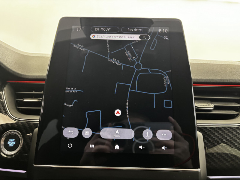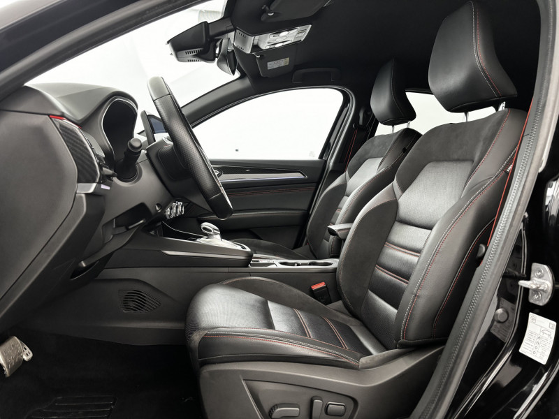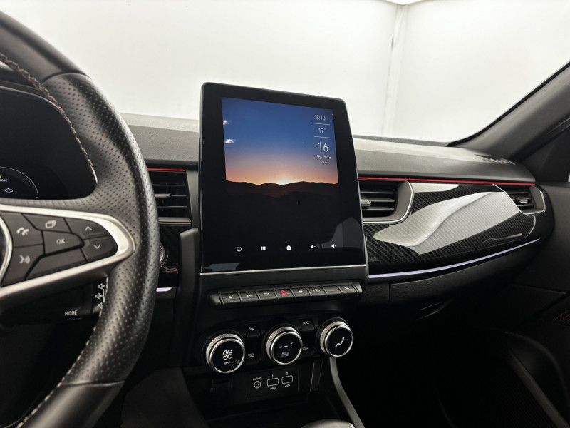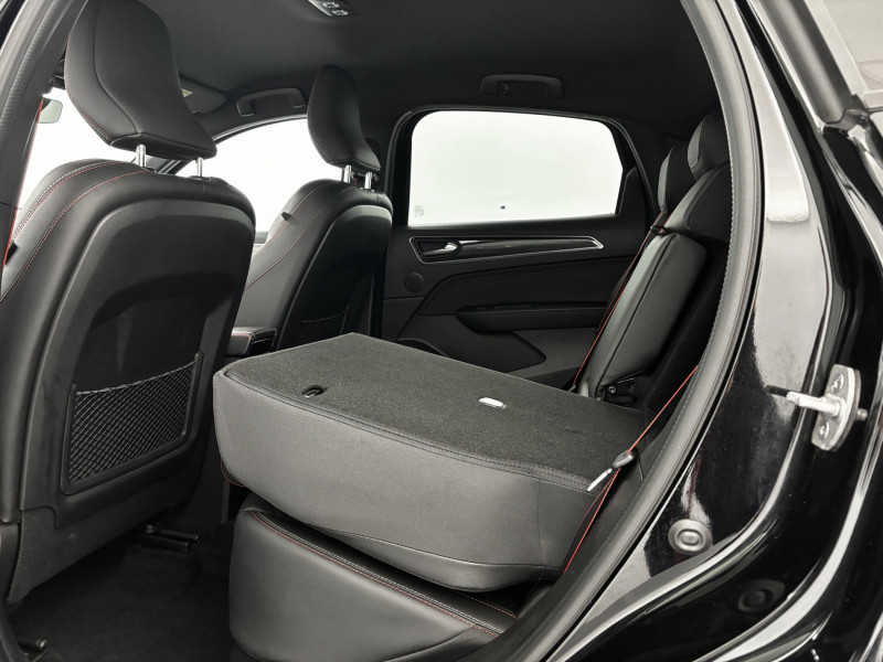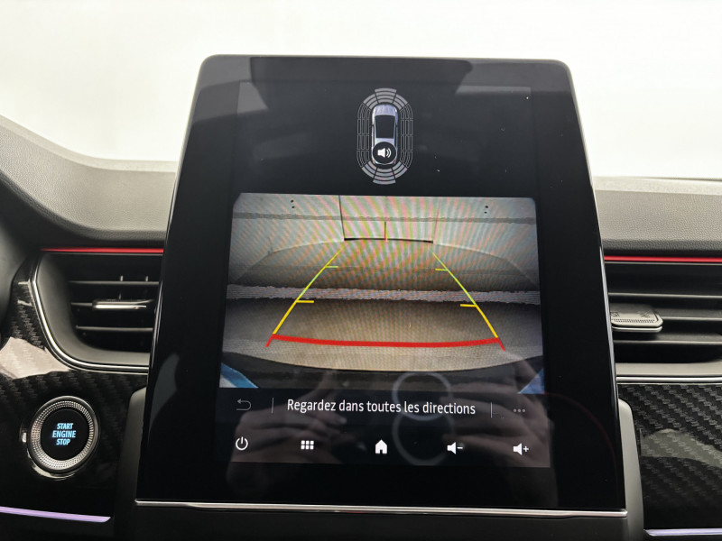 Aérateurs aux places AR / Alerte de distance de sécurité / Alerte de survitesse combinéà la vitesse limite de la navigation / Alerte d'oubli de ceinture de sécurité / Allumage automatique des phares et des essuis-glace avec capteur de pluie et de luminosité / Avertisseur de sortie de stationnement / Banquette AR avec accoudoir central / Boite de vitesse E shifter / Boitier connect AIVC / Bouton d'appel d'urgence R-Call / Carte Renault avec accès et démarrage mains libres avec fermeture à l'éloignement / Commutation automatique des feux de route/croisement / Compartimentage de coffre / Coques de rétroviseurs extérieures noires / Design exterieur RS-Line / Design intérieur RS-Line / Détection d'obstacle latérale / Easy link avec écran tactile 9.3", navigation, réplication smartphone, Bluetooth / Easy Park Assist / Eclairage d'ambiance / Feux de jour à LED avec signature lumineuse C-Shape / Freinage actif d'urgence avec détection piétons et cyclistes / Frein de parking électrique avec fonction Auto-Hold / Harmonie intérieure foncée / Indicateur de changement de vitesse / Jantes alliage 18" Silverstone diamantées exclusives R.S. Line avec insert Rouge / Lève-vitres AR électriques avec fonction anti-pincement / Programme eco mode / Projecteurs AV full LED Pure Vision / Purificateur d'air / Réhomologation E-Tech / Renault Multi-sense / Rétroviseur intérieur électrochrome sans contour / Sellerie mixte cuir-suédine surpiqués rouge / Signature R.S. Line / Système ISOFIX (i-Size) aux places AR (latérales) / Tableau de bord avec écran numérique et personnalisable 10" / Version Fast Track / Volant chauffant / Volant cuir pleine fleur /