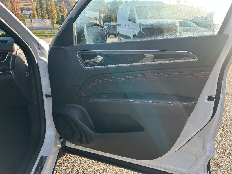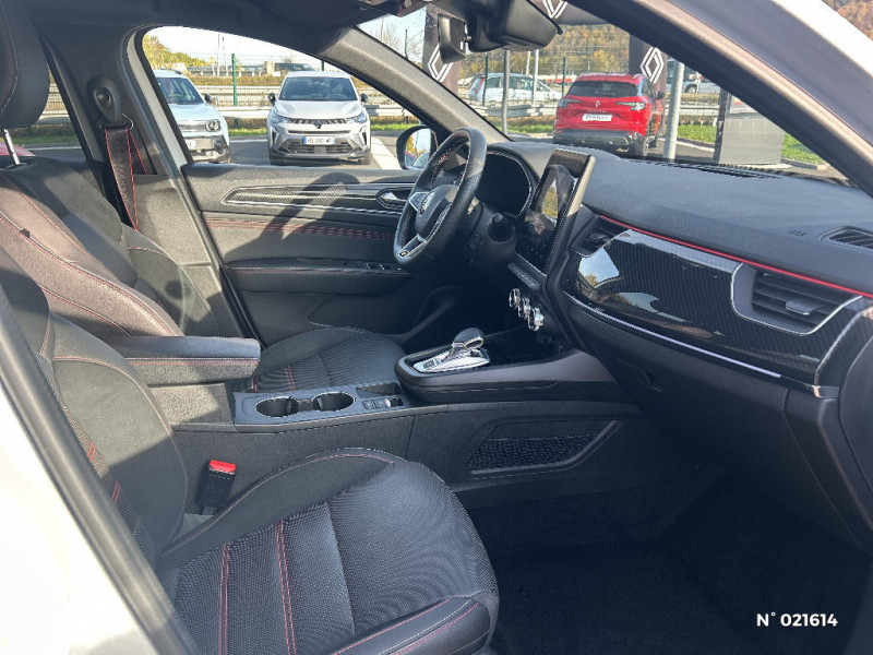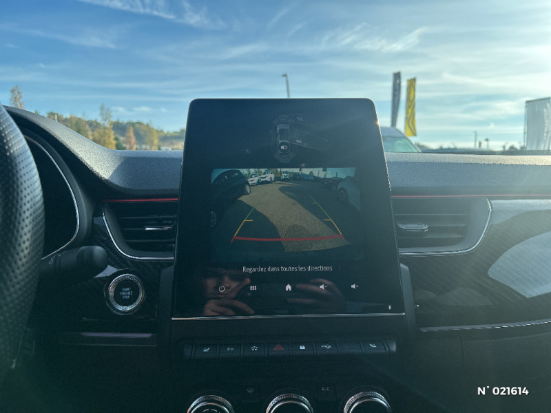 Avertisseur de sortie de stationnement / Boite de vitesse E shifter / Détection d'obstacle latérale / Feux de jour à LED avec signature lumineuse C-Shape / Programme eco mode / Rétroviseur intérieur électrochrome sans contour / Aérateurs aux places AR / Lève-vitres AR électriques avec fonction anti-pincement / Purificateur d'air / Coques de rétroviseurs extérieures noires (avec Toit Noir) / Freinage actif d'urgence avec détection piétons et cyclistes / Bouton d'appel d'urgence R-Call / Sellerie mixte cuir-suédine surpiqués rouge / Signature R.S. Line / Volant cuir pleine fleur / Boitier connect AIVC / Jantes alliage 18" Silverstone diamantées exclusives R.S. Line avec insert Rouge / Version Fast Track / Tableau de bord avec écran numérique et personnalisable 10" / Easy link avec écran tactile 9.3", navigation, réplication smartphone, Bluetooth / Réhomologation E-Tech / Système ISOFIX (i-Size) aux places AR (latérales) / Alerte de survitesse combinéà la vitesse limite de la navigation / Frein de parking électrique avec fonction Auto-Hold / Indicateur de changement de vitesse / Eclairage d'ambiance / Alerte Distance Sécurité / Alerte d'oubli de ceinture de sécurité / Volant chauffant / Banquette AR avec accoudoir central / Compartimentage de coffre / Projecteurs AV full LED Pure Vision / Easy Park Assist / Commutation automatique des feux de route/croisement / Harmonie foncé / Design exterieur RS-Line / Design intérieur RS-Line / Carte Renault avec accès et démarrage mains libres avec fermeture à l'éloignement / Renault Multi-sense / Allumage automatique des phares et des essuis-glace avec capteur de pluie et de luminosité