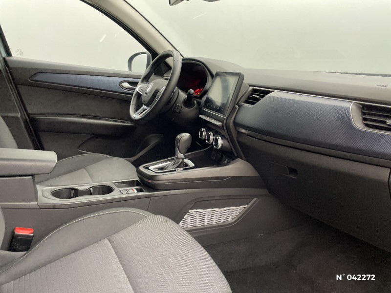Coques de rétroviseurs ton caisse / Indicateur de changement de vitesse / Alerte Distance Sécurité / Alerte d'oubli de ceinture de sécurité / Compartimentage de coffre / Projecteurs AV full LED Pure Vision / Commutation automatique des feux de route/croisement / Kit de gonflage et de réparation des pneumatiques / Harmonie foncé / Feux de jour à LED avec signature lumineuse C-Shape / Programme eco mode / Aérateurs aux places AR / Lève-vitres AR électriques avec fonction anti-pincement / Purificateur d'air / Freinage actif d'urgence avec détection piétons et cyclistes / Bouton d'appel d'urgence R-Call / Sellerie tissu Noir Titane / Volant gainé en similicuir Soft Touch / Boitier connect AIVC / Navigation embarquée avec cartographie Europe / Tableau de bord avec écran couleur 4,2'' et compteurs analogiques / Système ISOFIX (i-Size) aux places AR (latérales) / Alerte de survitesse combinéà la vitesse limite de la navigation / Compatibilité Apple CarPlay Wifi / Projecteurs AV LED pure vision / Jantes alliage 17" Bahamas diamantées noires / Carte Renault avec accès et démarrage mains libres avec fermeture à l'éloignement / Allumage automatique des phares et des essuis-glace avec capteur de pluie et de luminosité