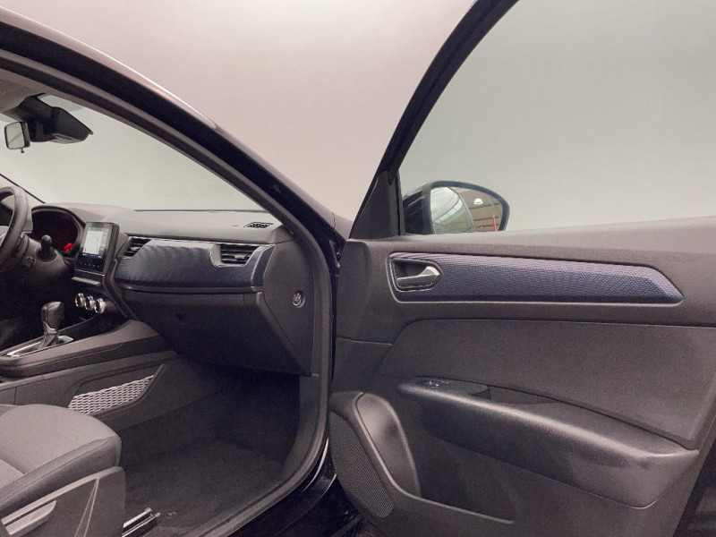 Commutation automatique des feux de route/croisement / Kit de gonflage et de réparation des pneumatiques / Harmonie foncé / Carte Renault avec accès et démarrage mains libres avec fermeture à l'éloignement / Lève-vitres AR électriques avec fonction anti-pincement / Purificateur d'air / Freinage actif d'urgence avec détection piétons et cyclistes / Bouton d'appel d'urgence R-Call / Sellerie tissu Noir Titane / Volant gainé en similicuir Soft Touch / Boitier connect AIVC / Jantes alliage 17" Bahamas diamantées noires / Coques de rétroviseurs ton caisse / Indicateur de changement de vitesse / Alerte Distance Sécurité / Alerte d'oubli de ceinture de sécurité / Compartimentage de coffre / Projecteurs AV full LED Pure Vision / Allumage automatique des phares et des essuis-glace avec capteur de pluie et de luminosité / Feux de jour à LED avec signature lumineuse C-Shape / Programme eco mode / Aérateurs aux places AR / Navigation embarquée avec cartographie Europe / Tableau de bord avec écran couleur 4,2'' et compteurs analogiques / Système ISOFIX (i-Size) aux places AR (latérales) / Alerte de survitesse combinéà la vitesse limite de la navigation / Compatibilité Apple CarPlay Wifi