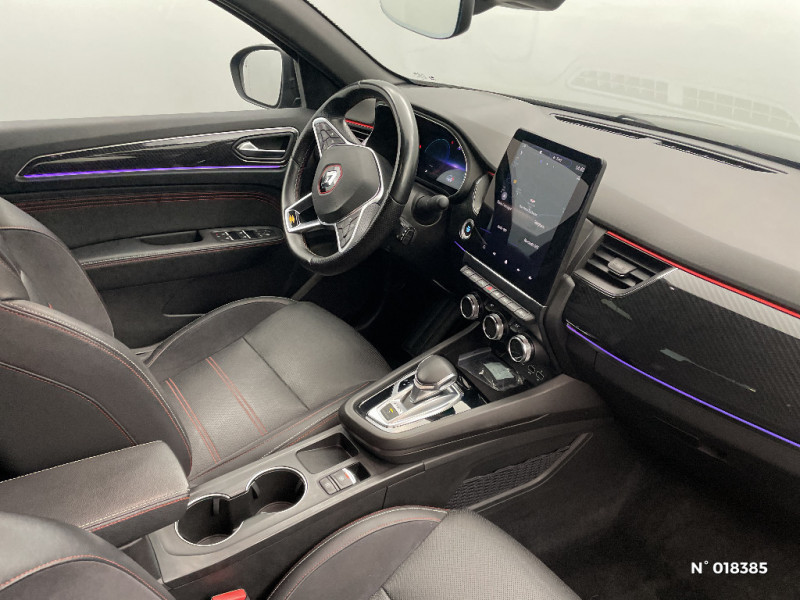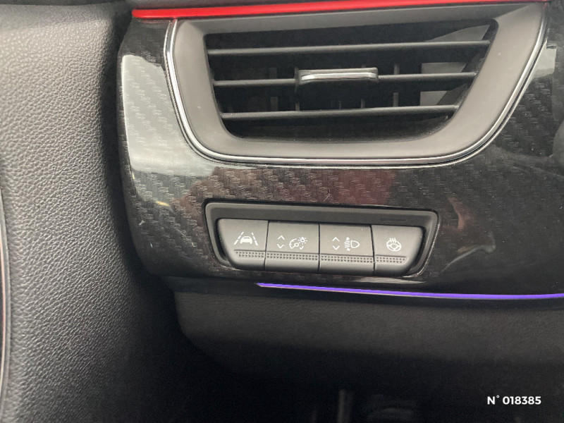 Signature R.S. Line / Volant cuir pleine fleur / Boitier connect AIVC / Cartographie France / Cartographie Standard / Système multimédia EASY LINK avec écran tactile 9,3", navigation, Bluetooth / Jantes alliage 18" Silverstone diamantées exclusives R.S. Line avec insert Rouge / Aérateurs aux places AR / Lève-vitres AR électriques avec fonction anti-pincement / Purificateur d'air / Coques de rétroviseurs extérieures noires (avec Toit Noir) / Freinage actif d'urgence avec détection piétons et cyclistes / Bouton d'appel d'urgence R-Call / Sellerie mixte cuir-suédine surpiqués rouge / Feux de jour à LED avec signature lumineuse C-Shape / Monte banalisée / Programme eco mode / Rétroviseur intérieur électrochrome sans contour / Indicateur de changement de vitesse / Eclairage d'ambiance / Avertisseur de sortie de stationnement / Boite de vitesse E shifter / Détection d'obstacle latérale / Alerte Distance Sécurité / Alerte d'oubli de ceinture de sécurité / Volant chauffant / Banquette AR avec accoudoir central / Compartimentage de coffre / Appellation Renault / Projecteurs AV full LED Pure Vision / Easy Park Assist / Commutation automatique des feux de route/croisement / Tableau de bord avec écran numérique et personnalisable 10" / Kit de gonflage et de réparation des pneumatiques / Harmonie foncé / Système ISOFIX (i-Size) aux places latérales AR et passager AV / Design exterieur RS-Line / Design intérieur RS-Line / Pneu standard / Renault Multi-sense / Alerte de survitesse combinéà la vitesse limite de la navigation / Allumage automatique des phares et des essuis-glace avec capteur de pluie et de luminosité