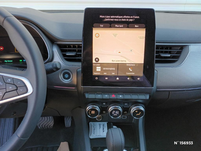 Banquette AR avec accoudoir central / Projecteurs AV full LED Pure Vision / Kit de gonflage et de réparation des pneumatiques / Harmonie foncé / Commutation automatique des feux de route/croisement / Rétroviseur intérieur électrochrome / Boîte de vitesse hybride multimode 6 rapports / Boitier connect AIVC / Carte Renault avec accès et démarrage mains libres avec fermeture à l'éloignement / Sans rangement de coffre / Volant non chauffant / Système ISOFIX (i-Size) aux places AR (latérales) / Frein de parking électrique avec fonction Auto-Hold / Tableau de bord avec écran numérique et personnalisable 10" / Projecteurs AV LED pure vision / Coques de rétroviseurs extérieures noires / Ciel de toit noir / Jantes alliage 17'' Bahamas gris pyrite / Renault Multi-sense / Allumage automatique des phares et des essuis-glace avec capteur de pluie et de luminosité / Avertisseur de sortie de stationnement / Feux de jour à LED avec signature lumineuse C-Shape / Programme eco mode / Aérateurs aux places AR / Lève-vitres AR électriques avec fonction anti-pincement / Purificateur d'air / Freinage actif d'urgence avec détection piétons et cyclistes / Bouton d'appel d'urgence R-Call / Indicateur de changement de vitesse / Eclairage d'ambiance / Alerte Distance Sécurité / Sellerie textile enduit grainé - tissu noir / Plancher de coffre amovible / Système multimédia easy link connecté avec écran tactile 9,3, radio DAB, navigation embarquée / Alerte détection de fatigue / Prédisposition éthylotest / Lame métallique sur bouclier AV inspirée de l'univers de la Formule 1 / Détection intelligente des limitations de vitesse et prévention survitesse / My Safety switch (raccourci vers configuration personnalisée des aides à la conduite) / Boîte de vitesse automatique 4 rapports