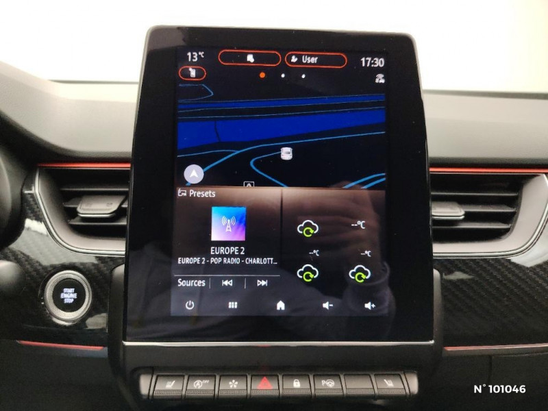 Jantes alliage 18" Silverstone diamantées exclusives R.S. Line avec insert Rouge / Easy link avec écran tactile 9.3", navigation, réplication smartphone, Bluetooth / Kit de gonflage et de réparation des pneumatiques / Harmonie foncé / Système ISOFIX (i-Size) aux places latérales AR et passager AV / Design exterieur RS-Line / Design intérieur RS-Line / Carte Renault avec accès et démarrage mains libres avec fermeture à l'éloignement / Pneu standard / Renault Multi-sense / Alerte de survitesse combinéà la vitesse limite de la navigation / Allumage automatique des phares et des essuis-glace avec capteur de pluie et de luminosité / Avertisseur de sortie de stationnement / Détection d'obstacle latérale / Feux de jour à LED avec signature lumineuse C-Shape / Banquette AR avec accoudoir central / Compartimentage de coffre / Appellation Renault / Projecteurs AV full LED Pure Vision / Easy Park Assist / Commutation automatique des feux de route/croisement / Indicateur de changement de vitesse / Eclairage d'ambiance / Alerte Distance Sécurité / Alerte d'oubli de ceinture de sécurité / Volant chauffant / Monte banalisée / Programme eco mode / Rétroviseur intérieur électrochrome sans contour / Aérateurs aux places AR / Lève-vitres AR électriques avec fonction anti-pincement / Purificateur d'air / Coques de rétroviseurs extérieures noires (avec Toit Noir) / Freinage actif d'urgence avec détection piétons et cyclistes / Bouton d'appel d'urgence R-Call / Sellerie mixte cuir-suédine surpiqués rouge / Signature R.S. Line / Volant cuir pleine fleur / Boitier connect AIVC / Cartographie France / Cartographie Standard / Système multimédia EASY LINK avec écran tactile 9,3", navigation, Bluetooth / Tableau de bord avec écran numérique couleur 7''