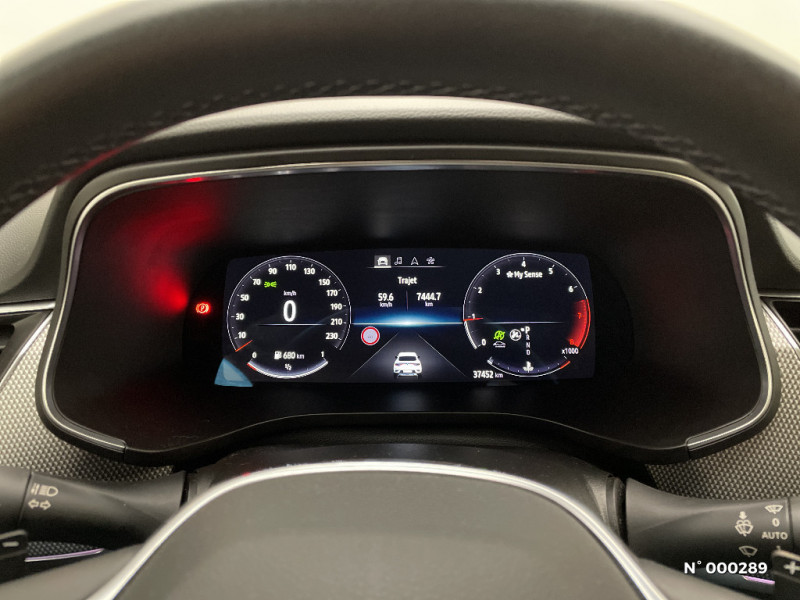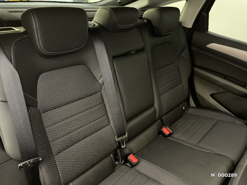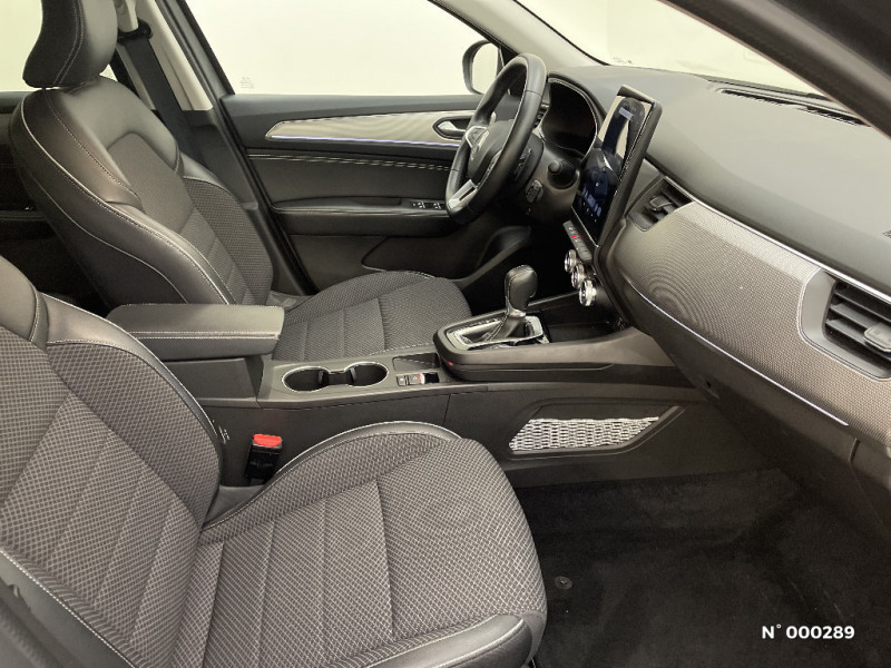 Avertisseur de sortie de stationnement / Eclairage d'ambiance / Feux de jour à LED avec signature lumineuse C-Shape / Programme eco mode / Aérateurs aux places AR / Freinage actif d'urgence avec détection piétons et cyclistes / Bouton d'appel d'urgence R-Call / Volant gainé en similicuir Soft Touch / Boitier connect AIVC / Tableau de bord avec écran numérique et personnalisable 10" / Sellerie similicuir-tissu Noir Titane / Easy link avec écran tactile 9.3", navigation, réplication smartphone, Bluetooth / Système ISOFIX (i-Size) aux places AR (latérales) / Alerte de survitesse combinéà la vitesse limite de la navigation / Compatibilité Apple CarPlay Wifi / Frein de parking électrique avec fonction Auto-Hold / Jantes alliage 18" Pasadena diamantées noires / Lève-vitres AR électriques avec fonction anti-pincement / Purificateur d'air / Alerte Distance Sécurité / Alerte d'oubli de ceinture de sécurité / Banquette AR avec accoudoir central / Compartimentage de coffre / Projecteurs AV full LED Pure Vision / Commutation automatique des feux de route/croisement / Kit de gonflage et de réparation des pneumatiques / Harmonie foncé / Carte Renault avec accès et démarrage mains libres avec fermeture à l'éloignement / Renault Multi-sense / Allumage automatique des phares et des essuis-glace avec capteur de pluie et de luminosité / Rétroviseur intérieur électrochrome / Coques de rétroviseurs ton caisse / Indicateur de changement de vitesse