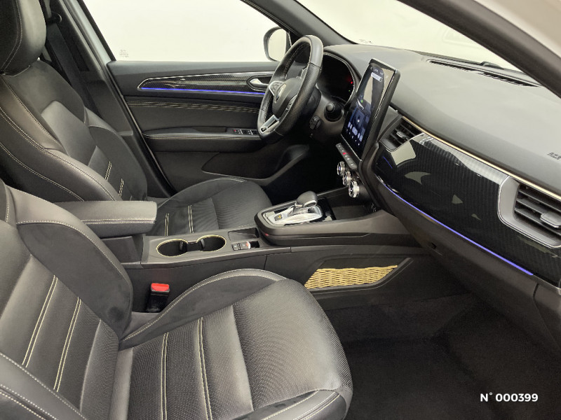 Easy Park Assist / Kit de gonflage et de réparation des pneumatiques / Harmonie foncé / Carte Renault avec accès et démarrage mains libres avec fermeture à l'éloignement / Volant cuir pleine fleur / Boitier connect AIVC / Tableau de bord avec écran numérique et personnalisable 10" / Easy link avec écran tactile 9.3", navigation, réplication smartphone, Bluetooth / Réhomologation E-Tech / Système ISOFIX (i-Size) aux places AR (latérales) / Alerte de survitesse combinéà la vitesse limite de la navigation / Compatibilité Apple CarPlay Wifi / Frein de parking électrique avec fonction Auto-Hold / Lame F1 Golf / Sellerie cuir/suédine E-Tech engineered avec surpiqures gold / Renault Multi-sense / Allumage automatique des phares et des essuis-glace avec capteur de pluie et de luminosité / Avertisseur de sortie de stationnement / Boite de vitesse E shifter / Détection d'obstacle latérale / Feux de jour à LED avec signature lumineuse C-Shape / Programme eco mode / Rétroviseur intérieur électrochrome sans contour / Aérateurs aux places AR / Lève-vitres AR électriques avec fonction anti-pincement / Purificateur d'air / Freinage actif d'urgence avec détection piétons et cyclistes / Bouton d'appel d'urgence R-Call / Jantes alliage 18" silverstone diamantées avec insert gold / Coques de rétroviseurs extérieures noires / Indicateur de changement de vitesse / Eclairage d'ambiance / Alerte Distance Sécurité / Alerte d'oubli de ceinture de sécurité / Volant chauffant / Banquette AR avec accoudoir central / Compartimentage de coffre / Projecteurs AV full LED Pure Vision / Commutation automatique des feux de route/croisement