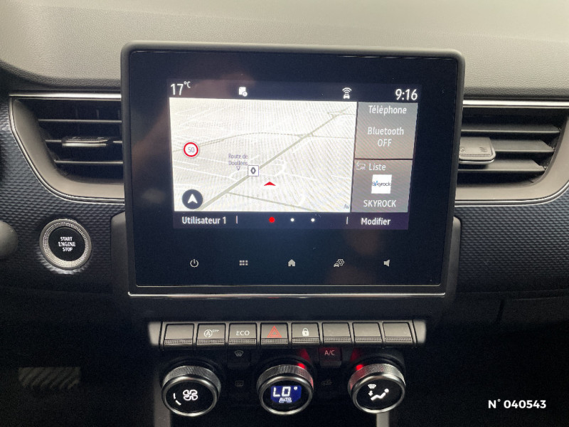Freinage actif d'urgence avec détection piétons et cyclistes / Bouton d'appel d'urgence R-Call / Sellerie tissu Noir Titane / Volant gainé en similicuir Soft Touch / Boitier connect AIVC / Kit de gonflage et de réparation des pneumatiques / Harmonie foncé / Carte Renault avec accès et démarrage mains libres avec fermeture à l'éloignement / Allumage automatique des phares et des essuis-glace avec capteur de pluie et de luminosité / Feux de jour à LED avec signature lumineuse C-Shape / Programme eco mode / Aérateurs aux places AR / Lève-vitres AR électriques avec fonction anti-pincement / Purificateur d'air / Navigation embarquée avec cartographie Europe / Tableau de bord avec écran couleur 4,2'' et compteurs analogiques / Système ISOFIX (i-Size) aux places AR (latérales) / Alerte de survitesse combinéà la vitesse limite de la navigation / Compatibilité Apple CarPlay Wifi / Jantes alliage 17" Bahamas diamantées noires / Coques de rétroviseurs ton caisse / Indicateur de changement de vitesse / Alerte Distance Sécurité / Alerte d'oubli de ceinture de sécurité / Compartimentage de coffre / Projecteurs AV full LED Pure Vision / Commutation automatique des feux de route/croisement