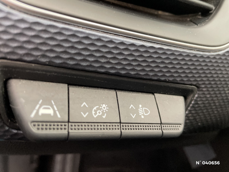 Coques de rétroviseurs ton caisse / Indicateur de changement de vitesse / Alerte Distance Sécurité / Alerte d'oubli de ceinture de sécurité / Compartimentage de coffre / Projecteurs AV full LED Pure Vision / Commutation automatique des feux de route/croisement / Kit de gonflage et de réparation des pneumatiques / Harmonie foncé / Carte Renault avec accès et démarrage mains libres avec fermeture à l'éloignement / Allumage automatique des phares et des essuis-glace avec capteur de pluie et de luminosité / Navigation embarquée avec cartographie Europe / Tableau de bord avec écran couleur 4,2'' et compteurs analogiques / Système ISOFIX (i-Size) aux places AR (latérales) / Alerte de survitesse combinéà la vitesse limite de la navigation / Compatibilité Apple CarPlay Wifi / Projecteurs AV LED pure vision / Feux de jour à LED avec signature lumineuse C-Shape / Programme eco mode / Aérateurs aux places AR / Lève-vitres AR électriques avec fonction anti-pincement / Purificateur d'air / Jantes alliage 17" Bahamas diamantées noires / Freinage actif d'urgence avec détection piétons et cyclistes / Bouton d'appel d'urgence R-Call / Sellerie tissu Noir Titane / Volant gainé en similicuir Soft Touch / Boitier connect AIVC
