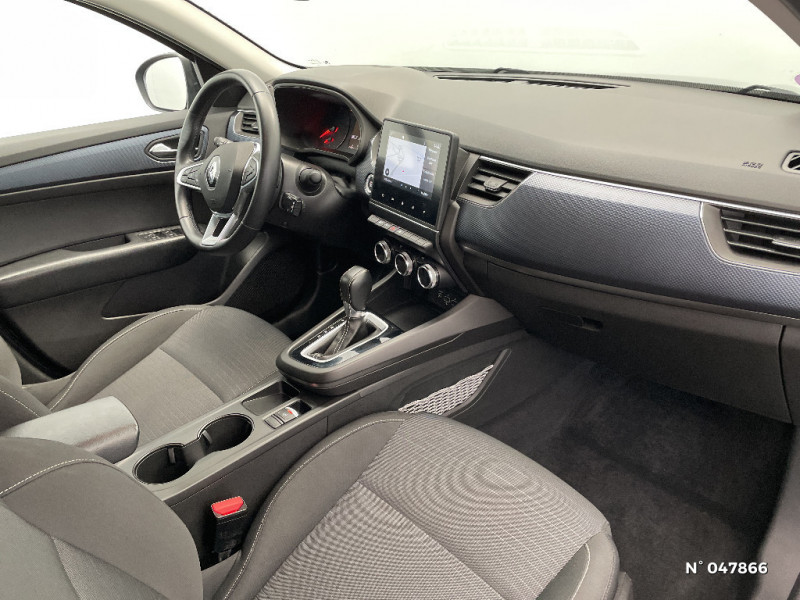 Carte Renault avec accès et démarrage mains libres avec fermeture à l'éloignement / Allumage automatique des phares et des essuis-glace avec capteur de pluie et de luminosité / Feux de jour à LED avec signature lumineuse C-Shape / Programme eco mode / Aérateurs aux places AR / Lève-vitres AR électriques avec fonction anti-pincement / Purificateur d'air / Freinage actif d'urgence avec détection piétons et cyclistes / Bouton d'appel d'urgence R-Call / Sellerie tissu Noir Titane / Volant gainé en similicuir Soft Touch / Boitier connect AIVC / Navigation embarquée avec cartographie Europe / Tableau de bord avec écran couleur 4,2'' et compteurs analogiques / Système ISOFIX (i-Size) aux places AR (latérales) / Alerte de survitesse combinéà la vitesse limite de la navigation / Compatibilité Apple CarPlay Wifi / Jantes alliage 17" Bahamas diamantées noires / Coques de rétroviseurs ton caisse / Indicateur de changement de vitesse / Alerte Distance Sécurité / Alerte d'oubli de ceinture de sécurité / Kit de gonflage et de réparation des pneumatiques / Harmonie foncé / Projecteurs AV full LED Pure Vision / Commutation automatique des feux de route/croisement / Compartimentage de coffre