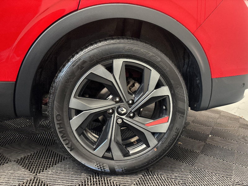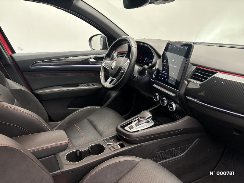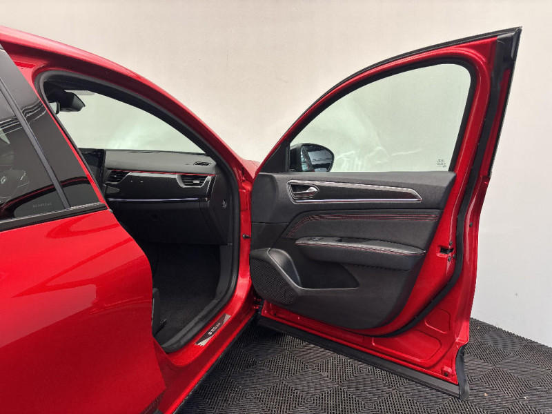 Allumage automatique des phares et des essuis-glace avec capteur de pluie et de luminosité / Appellation Renault / Avertisseur de sortie de stationnement / Banquette AR avec accoudoir central / Freinage actif d'urgence avec détection piétons et cyclistes / Harmonie intérieure foncée / Indicateur de changement de vitesse / Jantes alliage 18" Silverstone diamantées exclusives R.S. Line avec insert Rouge / Kit de gonflage et de réparation des pneumatiques / Lève-vitres AR électriques avec fonction anti-pincement / Monte banalisée / Pneu standard / Programme eco mode / Projecteurs AV full LED Pure Vision / Purificateur d'air / Renault Multi-sense / Rétroviseur intérieur électrochrome sans contour / Sellerie mixte cuir-suédine surpiqués rouge / Signature R.S. Line / Système ISOFIX (i-Size) aux places AR (latérales) / Système ISOFIX (i-Size) aux places latérales AR et passager AV / Système multimédia EASY LINK avec écran tactile 9,3", navigation, Bluetooth / Tableau de bord avec écran numérique couleur 7'' / Volant chauffant / Volant cuir pleine fleur / Boite de vitesse E shifter / Boitier connect AIVC / Bouton d'appel d'urgence R-Call / Carte Renault avec accès et démarrage mains libres avec fermeture à l'éloignement / Cartographie France / Cartographie Standard / Commutation automatique des feux de route/croisement / Compartimentage de coffre / Compartimentage de coffre / Coques de rétroviseurs extérieures noires (avec Toit Noir) / Design exterieur RS-Line / Design intérieur RS-Line / Détection d'obstacle latérale / Easy link avec écran tactile 9.3", navigation, réplication smartphone, Bluetooth / Easy Park Assist / Eclairage d'ambiance / Feux de jour à LED avec signature lumineuse C-Shape / Aérateurs aux places AR / Alerte collision AR et freinage actif d'urgence AR piéton / Alerte de distance de sécurité / Alerte de survitesse combinéà la vitesse limite de la navigation / Alerte d'oubli de ceinture de sécurité