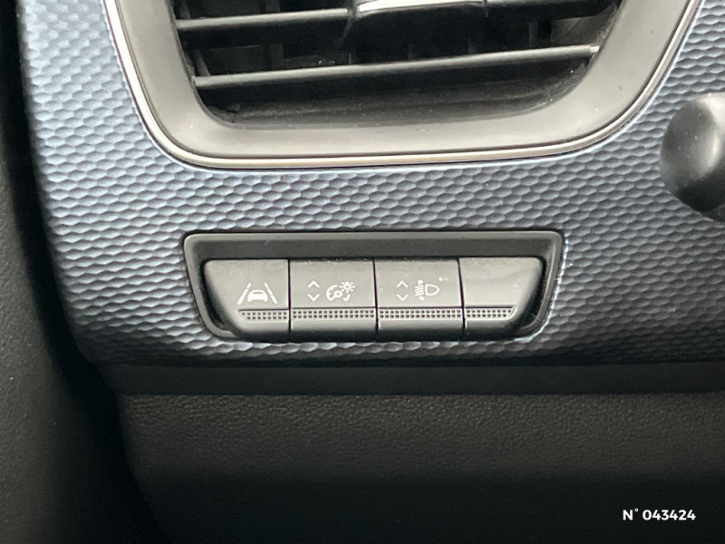 Commutation automatique des feux de route/croisement / Harmonie foncé / Carte Renault avec accès et démarrage mains libres avec fermeture à l'éloignement / Allumage automatique des phares et des essuis-glace avec capteur de pluie et de luminosité / Programme eco mode / Aérateurs aux places AR / Lève-vitres AR électriques avec fonction anti-pincement / Purificateur d'air / Jantes alliage 17" Bahamas diamantées noires / Freinage actif d'urgence avec détection piétons et cyclistes / Bouton d'appel d'urgence R-Call / Sellerie tissu Noir Titane / Volant gainé en similicuir Soft Touch / Boitier connect AIVC / Tableau de bord avec écran numérique couleur 7'' / Navigation embarquée avec cartographie Europe / Système ISOFIX (i-Size) aux places AR (latérales) / Alerte de survitesse combinéà la vitesse limite de la navigation / Compatibilité Apple CarPlay Wifi / Projecteurs AV LED pure vision / Coques de rétroviseurs ton caisse / Indicateur de changement de vitesse / Alerte Distance Sécurité / Alerte d'oubli de ceinture de sécurité / Compartimentage de coffre / Projecteurs AV full LED Pure Vision / Kit de gonflage et de réparation des pneumatiques