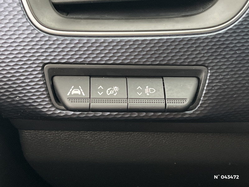 Coques de rétroviseurs ton caisse / Indicateur de changement de vitesse / Alerte Distance Sécurité / Sellerie tissu Noir Titane / Volant gainé en similicuir Soft Touch / Boitier connect AIVC / Système Multimédia EASY LINK avec écran 7" avec replication smartphone + WIFI - 6 haut-parleurs / Tableau de bord avec écran numérique couleur 7'' / Navigation embarquée avec cartographie Europe / Système ISOFIX (i-Size) aux places AR (latérales) / Alerte d'oubli de ceinture de sécurité / Compartimentage de coffre / Projecteurs AV full LED Pure Vision / Commutation automatique des feux de route/croisement / Kit de gonflage et de réparation des pneumatiques / Harmonie foncé / Système ISOFIX (i-Size) aux places latérales AR et passager AV / Carte Renault avec accès et démarrage mains libres avec fermeture à l'éloignement / Alerte de survitesse combinéà la vitesse limite de la navigation / Allumage automatique des phares et des essuis-glace avec capteur de pluie et de luminosité / Feux de jour à LED avec signature lumineuse C-Shape / Programme eco mode / Aérateurs aux places AR / Lève-vitres AR électriques avec fonction anti-pincement / Purificateur d'air / Jantes alliage 17" Bahamas diamantées noires / Freinage actif d'urgence avec détection piétons et cyclistes / Bouton d'appel d'urgence R-Call
