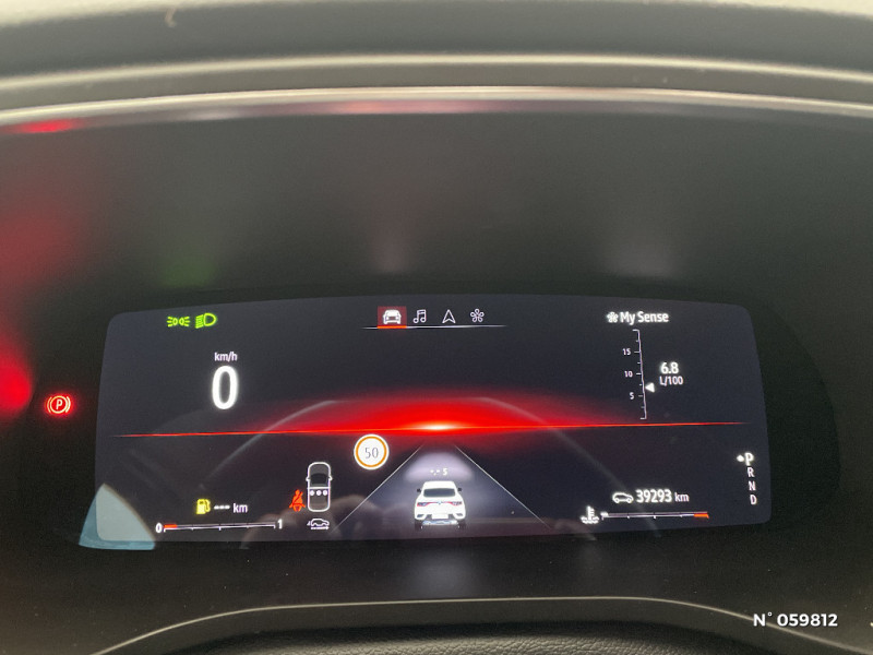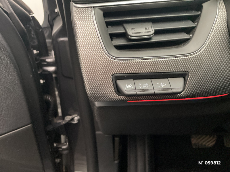 Rétroviseur intérieur électrochrome / Coques de rétroviseurs ton caisse / Indicateur de changement de vitesse / Eclairage d'ambiance / Alerte Distance Sécurité / Alerte d'oubli de ceinture de sécurité / Banquette AR avec accoudoir central / Compartimentage de coffre / Tableau de bord avec écran numérique et personnalisable 10" / Sellerie similicuir-tissu Noir Titane / Easy link avec écran tactile 9.3", navigation, réplication smartphone, Bluetooth / Système ISOFIX (i-Size) aux places AR (latérales) / Alerte de survitesse combinéà la vitesse limite de la navigation / Compatibilité Apple CarPlay Wifi / Frein de parking électrique avec fonction Auto-Hold / Jantes alliage 18" Pasadena diamantées noires / Boitier connect AIVC / Projecteurs AV full LED Pure Vision / Commutation automatique des feux de route/croisement / Kit de gonflage et de réparation des pneumatiques / Harmonie foncé / Carte Renault avec accès et démarrage mains libres avec fermeture à l'éloignement / Renault Multi-sense / Allumage automatique des phares et des essuis-glace avec capteur de pluie et de luminosité / Avertisseur de sortie de stationnement / Feux de jour à LED avec signature lumineuse C-Shape / Programme eco mode / Aérateurs aux places AR / Lève-vitres AR électriques avec fonction anti-pincement / Purificateur d'air / Freinage actif d'urgence avec détection piétons et cyclistes / Bouton d'appel d'urgence R-Call / Volant gainé en similicuir Soft Touch