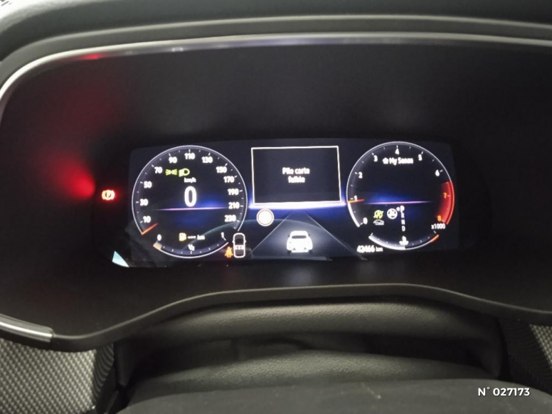 Freinage actif d'urgence avec détection piétons et cyclistes / Bouton d'appel d'urgence R-Call / Volant gainé en similicuir Soft Touch / Boitier connect AIVC / Tableau de bord avec écran numérique et personnalisable 10" / Sellerie similicuir-tissu Noir Titane / Easy link avec écran tactile 9.3", navigation, réplication smartphone, Bluetooth / Système ISOFIX (i-Size) aux places AR (latérales) / Alerte de survitesse combinéà la vitesse limite de la navigation / Compatibilité Apple CarPlay Wifi / Frein de parking électrique avec fonction Auto-Hold / Jantes alliage 18" Pasadena diamantées noires / Feux de jour à LED avec signature lumineuse C-Shape / Commutation automatique des feux de route/croisement / Kit de gonflage et de réparation des pneumatiques / Harmonie foncé / Programme eco mode / Aérateurs aux places AR / Lève-vitres AR électriques avec fonction anti-pincement / Purificateur d'air / Carte Renault avec accès et démarrage mains libres avec fermeture à l'éloignement / Renault Multi-sense / Allumage automatique des phares et des essuis-glace avec capteur de pluie et de luminosité / Avertisseur de sortie de stationnement / Rétroviseur intérieur électrochrome / Coques de rétroviseurs ton caisse / Indicateur de changement de vitesse / Eclairage d'ambiance / Alerte Distance Sécurité / Alerte d'oubli de ceinture de sécurité / Banquette AR avec accoudoir central / Compartimentage de coffre / Projecteurs AV full LED Pure Vision