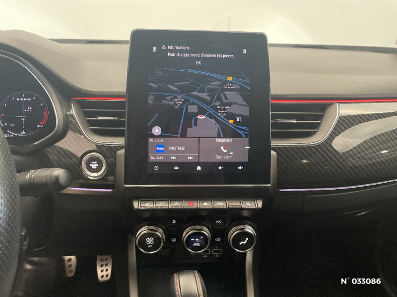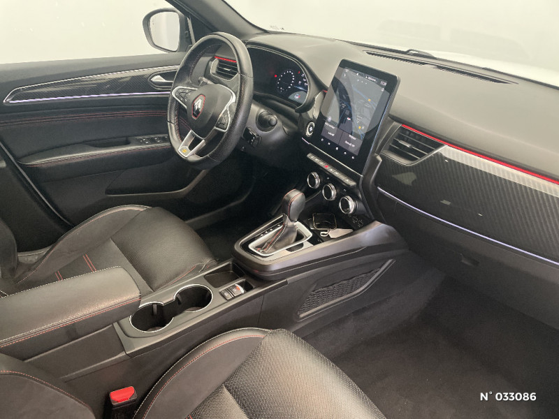 Alerte collision AR et freinage actif d'urgence AR piéton / Aérateurs aux places AR / Lève-vitres AR électriques avec fonction anti-pincement / Purificateur d'air / Coques de rétroviseurs extérieures noires (avec Toit Noir) / Freinage actif d'urgence avec détection piétons et cyclistes / Bouton d'appel d'urgence R-Call / Sellerie mixte cuir-suédine surpiqués rouge / Signature R.S. Line / Volant cuir pleine fleur / Boitier connect AIVC / Système multimédia EASY LINK avec écran tactile 9,3", navigation, Bluetooth / Tableau de bord avec écran numérique couleur 7'' / Jantes alliage 18" Silverstone diamantées exclusives R.S. Line avec insert Rouge / Easy link avec écran tactile 9.3", navigation, réplication smartphone, Bluetooth / Système ISOFIX (i-Size) aux places AR (latérales) / Alerte de survitesse combinéà la vitesse limite de la navigation / Allumage automatique des phares et des essuis-glace avec capteur de pluie et de luminosité / Avertisseur de sortie de stationnement / Détection d'obstacle latérale / Feux de jour à LED avec signature lumineuse C-Shape / Programme eco mode / Rétroviseur intérieur électrochrome sans contour / Indicateur de changement de vitesse / Eclairage d'ambiance / Alerte Distance Sécurité / Alerte d'oubli de ceinture de sécurité / Volant chauffant / Banquette AR avec accoudoir central / Compartimentage de coffre / Projecteurs AV full LED Pure Vision / Easy Park Assist / Commutation automatique des feux de route/croisement / Kit de gonflage et de réparation des pneumatiques / Harmonie foncé / Système ISOFIX (i-Size) aux places latérales AR et passager AV / Design exterieur RS-Line / Design intérieur RS-Line / Carte Renault avec accès et démarrage mains libres avec fermeture à l'éloignement / Renault Multi-sense