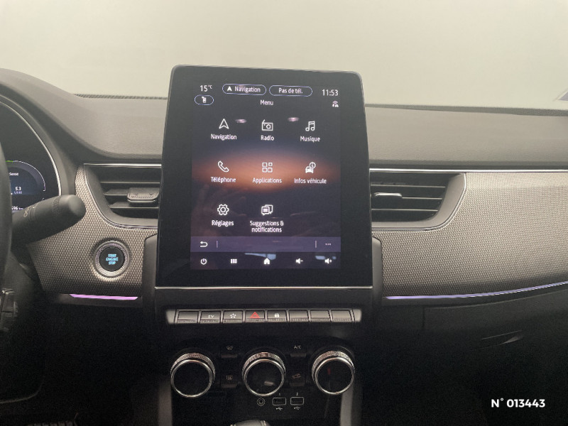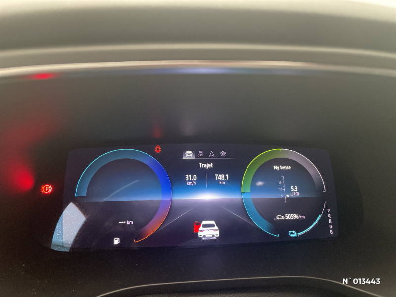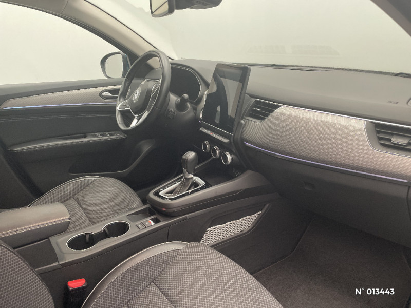 Tableau de bord avec écran numérique et personnalisable 10" / Kit de gonflage et de réparation des pneumatiques / Harmonie foncé / Système ISOFIX (i-Size) aux places latérales AR et passager AV / Pneu standard / Renault Multi-sense / Alerte collision AR et freinage actif d'urgence AR piéton / Allumage automatique des phares et des essuis-glace avec capteur de pluie et de luminosité / Avertisseur de sortie de stationnement / Feux de jour à LED avec signature lumineuse C-Shape / Monte banalisée / Programme eco mode / Aérateurs aux places AR / Lève-vitres AR électriques avec fonction anti-pincement / Purificateur d'air / Jantes alliage 18" Pasadena diamantées noires / Freinage actif d'urgence avec détection piétons et cyclistes / Bouton d'appel d'urgence R-Call / Sellerie tissu/TEP Noir Titane / Volant cuir pleine fleur / Boitier connect AIVC / Cartographie France / Cartographie Standard / Système multimédia EASY LINK avec écran tactile 9,3", navigation, Bluetooth / Rétroviseur intérieur électrochrome / Coques de rétroviseurs ton caisse / Indicateur de changement de vitesse / Eclairage d'ambiance / Alerte Distance Sécurité / Alerte d'oubli de ceinture de sécurité / Banquette AR avec accoudoir central / Compartimentage de coffre / Appellation Renault / Projecteurs AV full LED Pure Vision / Commutation automatique des feux de route/croisement