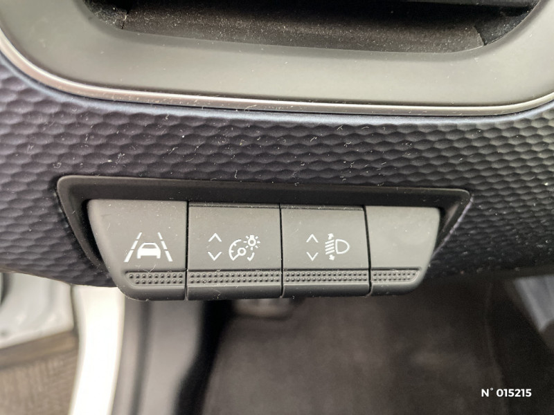 Coques de rétroviseurs ton caisse / Indicateur de changement de vitesse / Alerte Distance Sécurité / Alerte d'oubli de ceinture de sécurité / Projecteurs AV full LED Pure Vision / Kit de gonflage et de réparation des pneumatiques / Harmonie foncé / Carte Renault avec accès et démarrage mains libres avec fermeture à l'éloignement / Allumage automatique des phares et des essuis-glace avec capteur de pluie et de luminosité / Feux de jour à LED avec signature lumineuse C-Shape / Programme eco mode / Aérateurs aux places AR / Lève-vitres AR électriques avec fonction anti-pincement / Purificateur d'air / Freinage actif d'urgence avec détection piétons et cyclistes / Bouton d'appel d'urgence R-Call / Sellerie tissu Noir Titane / Volant gainé en similicuir Soft Touch / Boitier connect AIVC / Compartimentage de coffre / Easy Link avec écran tactile 7", réplication smartphone, radio DAB, Bluetooth, wifi, 6 haut-parleurs / Tableau de bord avec écran couleur 4,2'' et compteurs analogiques / Système ISOFIX (i-Size) aux places AR (latérales) / Jantes alliage 17" Bahamas diamantées noires