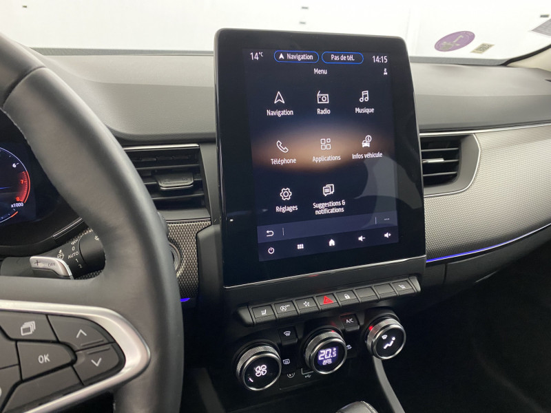Allumage automatique des phares et des essuis-glace avec capteur de pluie et de luminosité: / Avertisseur de sortie de stationnement: / Commutation automatique des feux de route/croisement: / Feux de jour à LED avec signature lumineuse C-Shape: / Jantes alliage 18" Pasadena diamantées noires: / Projecteurs AV full LED Pure Vision: / Système multimédia EASY LINK avec écran tactile 9,3", navigation, Bluetooth: / Volant cuir pleine fleur: / Alerte collision AR et freinage actif d'urgence AR piéton: / Alerte d'oubli de ceinture de sécurité: / Alerte de distance de sécurité: / Appellation Renault: / Aérateurs aux places AR: / Banquette AR avec accoudoir central: / Boitier connect AIVC: / Bouton d'appel d'urgence R-Call: / Cartographie France: / Cartographie Standard: / Compartimentage de coffre: / Coques de rétroviseurs extérieures ton caisse: / Détecteur d'angle mort: / Eclairage d'ambiance: / Freinage actif d'urgence avec détection piétons et cyclistes: / Harmonie intérieure foncée: / Indicateur de changement de vitesse: / Kit de gonflage et de réparation des pneumatiques: / Lève-vitres AR électriques avec fonction anti-pincement: / Monte banalisée: / Pneu standard: / Programme eco mode: / Purificateur d'air: / Renault Multi-sense: / Rétroviseur intérieur électrochrome: / Système ISOFIX (i-Size) aux places latérales AR et passager AV: / Tableau de bord avec écran numérique et personnalisable 10.2": / Sellerie tissu/TEP Noir Titane: /