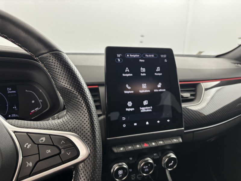 Alerte de survitesse combinéà la vitesse limite de la navigation: / Allumage automatique des phares et des essuis-glace avec capteur de pluie et de luminosité: / Avertisseur de sortie de stationnement: / Commutation automatique des feux de route/croisement: / Easy link avec écran tactile 9.3", navigation, réplication smartphone, Bluetooth: / Feux de jour à LED avec signature lumineuse C-Shape: / Jantes alliage 18" Silverstone diamantées exclusives R.S. Line avec insert Rouge: / Projecteurs AV full LED Pure Vision: / Volant cuir pleine fleur: / Alerte d'oubli de ceinture de sécurité: / Alerte de distance de sécurité: / Aérateurs aux places AR: / Banquette AR avec accoudoir central: / Boite de vitesse E shifter: / Boitier connect AIVC: / Bouton d'appel d'urgence R-Call: / Carte Renault avec accès et démarrage mains libres avec fermeture à l'éloignement: / Compartimentage de coffre: / Compartimentage de coffre: / Coques de rétroviseurs extérieures noires (avec Toit Noir): / Design exterieur RS-Line: / Design intérieur RS-Line: / Détecteur d'angle mort: / Détection d'obstacle latérale: / Easy Park Assist: / Eclairage d'ambiance: / Freinage actif d'urgence avec détection piétons et cyclistes: / Harmonie intérieure foncée: / Indicateur de changement de vitesse: / Kit de gonflage et de réparation des pneumatiques: / Lève-vitres AR électriques avec fonction anti-pincement: / Programme eco mode: / Purificateur d'air: / Renault Multi-sense: / Rétroviseur intérieur électrochrome sans contour: / Signature R.S. Line: / Système ISOFIX (i-Size) aux places AR (latérales): / Tableau de bord avec écran numérique couleur 7'': / Volant chauffant: / Sellerie mixte cuir-suédine surpiqués rouge: /