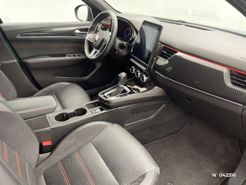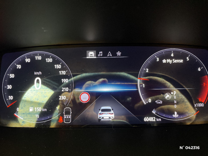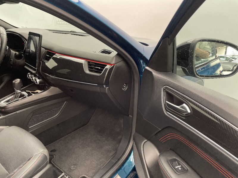 Indicateur de changement de vitesse / Eclairage d'ambiance / Alerte Distance Sécurité / Alerte d'oubli de ceinture de sécurité / Volant chauffant / Banquette AR avec accoudoir central / Compartimentage de coffre / Projecteurs AV full LED Pure Vision / Easy Park Assist / Commutation automatique des feux de route/croisement / Kit de gonflage et de réparation des pneumatiques / Harmonie foncé / Rétroviseur intérieur électrochrome sans contour / Aérateurs aux places AR / Lève-vitres AR électriques avec fonction anti-pincement / Purificateur d'air / Coques de rétroviseurs extérieures noires (avec Toit Noir) / Freinage actif d'urgence avec détection piétons et cyclistes / Bouton d'appel d'urgence R-Call / Sellerie mixte cuir-suédine surpiqués rouge / Jantes alliage 18" Silverstone diamantées exclusives R.S. Line avec insert Rouge / Easy link avec écran tactile 9.3", navigation, réplication smartphone, Bluetooth / Signature R.S. Line / Volant cuir pleine fleur / Boitier connect AIVC / Système multimédia EASY LINK avec écran tactile 9,3", navigation, Bluetooth / Tableau de bord avec écran numérique couleur 7'' / Système ISOFIX (i-Size) aux places latérales AR et passager AV / Design exterieur RS-Line / Design intérieur RS-Line / Carte Renault avec accès et démarrage mains libres avec fermeture à l'éloignement / Renault Multi-sense / Alerte de survitesse combinéà la vitesse limite de la navigation / Allumage automatique des phares et des essuis-glace avec capteur de pluie et de luminosité / Avertisseur de sortie de stationnement / Détection d'obstacle latérale / Feux de jour à LED avec signature lumineuse C-Shape / Programme eco mode