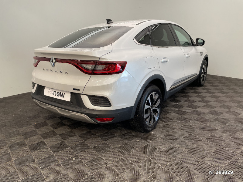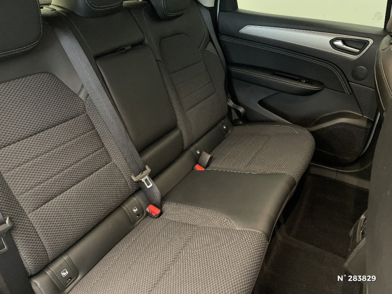 Rétroviseur intérieur électrochrome / Coques de rétroviseurs ton caisse / Indicateur de changement de vitesse / Eclairage d'ambiance / Alerte Distance Sécurité / Alerte d'oubli de ceinture de sécurité / Banquette AR avec accoudoir central / Compartimentage de coffre / Projecteurs AV full LED Pure Vision / Commutation automatique des feux de route/croisement / Kit de gonflage et de réparation des pneumatiques / Harmonie foncé / Carte Renault avec accès et démarrage mains libres avec fermeture à l'éloignement / Renault Multi-sense / Allumage automatique des phares et des essuis-glace avec capteur de pluie et de luminosité / Avertisseur de sortie de stationnement / Feux de jour à LED avec signature lumineuse C-Shape / Programme eco mode / Aérateurs aux places AR / Lève-vitres AR électriques avec fonction anti-pincement / Purificateur d'air / Freinage actif d'urgence avec détection piétons et cyclistes / Bouton d'appel d'urgence R-Call / Volant gainé en similicuir Soft Touch / Boitier connect AIVC / Tableau de bord avec écran numérique et personnalisable 10" / Sellerie similicuir-tissu Noir Titane / Easy link avec écran tactile 9.3", navigation, réplication smartphone, Bluetooth / Réhomologation E-Tech / Volant non chauffant / Système ISOFIX (i-Size) aux places AR (latérales) / Alerte de survitesse combinéà la vitesse limite de la navigation / Compatibilité Apple CarPlay Wifi / Frein de parking électrique avec fonction Auto-Hold / Jantes alliage 18" Pasadena diamantées noires