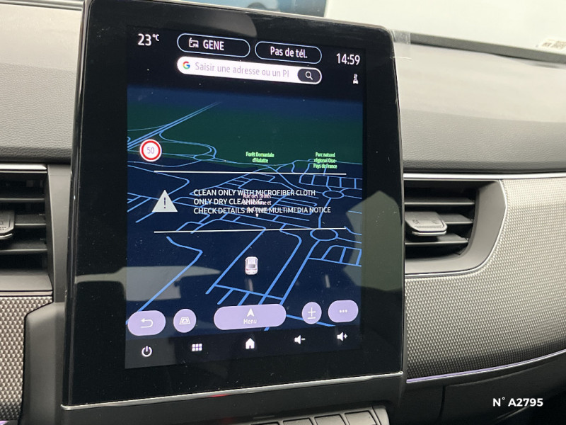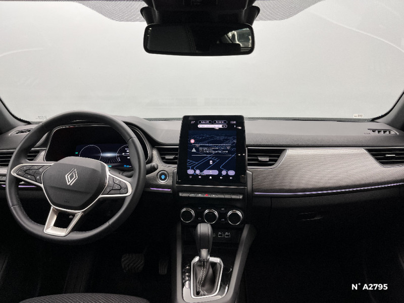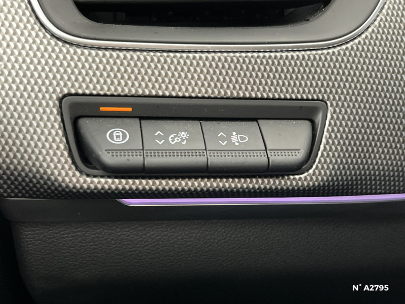 Aérateurs aux places AR / Alerte de distance de sécurité / Alerte détection de fatigue / Allumage automatique des phares et des essuis-glace avec capteur de pluie et de luminosité / Banquette AR avec accoudoir central / Boîte de vitesse hybride multimode 6 rapports / Boitier connect AIVC / Bouton d'appel d'urgence R-Call / Carte Renault avec accès et démarrage mains libres avec fermeture à l'éloignement / Ciel de toit noir / Purificateur d'air / Renault Multi-sense / Rétroviseur intérieur électrochrome / Sellerie textile enduit grainé - tissu noir / Système ISOFIX (i-Size) aux places AR (latérales) / Système multimédia easy link connecté avec écran tactile 9,3, radio DAB, navigation embarquée / Tableau de bord avec écran numérique et personnalisable 10" / Commutation automatique des feux de route/croisement / Coques de rétroviseurs extérieures noires / Détection intelligente des limitations de vitesse et prévention survitesse / Eclairage d'ambiance / Frein de parking électrique avec fonction Auto-Hold / Freinage actif d'urgence avec détection piétons et cyclistes / Harmonie intérieure foncée / Indicateur de changement de vitesse / Jantes alliage 17'' Bahamas gris pyrite / Kit de gonflage et de réparation des pneumatiques / Lame métallique sur bouclier AV inspirée de l'univers de la Formule 1 / Lève-vitres AR électriques avec fonction anti-pincement / My Safety switch (raccourci vers configuration personnalisée des aides à la conduite) / Plancher de coffre amovible / Prédisposition éthylotest / Programme eco mode / Projecteurs AV LED pure vision