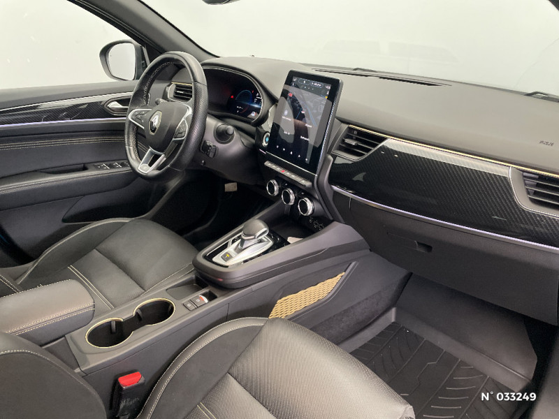 Système ISOFIX (i-Size) aux places AR (latérales) / Alerte de survitesse combinéà la vitesse limite de la navigation / Compatibilité Apple CarPlay Wifi / Frein de parking électrique avec fonction Auto-Hold / Lame F1 Golf / Sellerie cuir/suédine E-Tech engineered avec surpiqures gold / Jantes alliage 18" silverstone diamantées avec insert gold / Coques de rétroviseurs extérieures noires / Boite de vitesse E shifter / Détection d'obstacle latérale / Feux de jour à LED avec signature lumineuse C-Shape / Programme eco mode / Rétroviseur intérieur électrochrome sans contour / Aérateurs aux places AR / Lève-vitres AR électriques avec fonction anti-pincement / Purificateur d'air / Coques de rétroviseurs extérieures noires (avec Toit Noir) / Freinage actif d'urgence avec détection piétons et cyclistes / Bouton d'appel d'urgence R-Call / Volant cuir pleine fleur / Volant chauffant / Banquette AR avec accoudoir central / Compartimentage de coffre / Projecteurs AV full LED Pure Vision / Easy Park Assist / Commutation automatique des feux de route/croisement / Kit de gonflage et de réparation des pneumatiques / Harmonie foncé / Carte Renault avec accès et démarrage mains libres avec fermeture à l'éloignement / Renault Multi-sense / Allumage automatique des phares et des essuis-glace avec capteur de pluie et de luminosité / Avertisseur de sortie de stationnement / Indicateur de changement de vitesse / Eclairage d'ambiance / Alerte Distance Sécurité / Alerte d'oubli de ceinture de sécurité / Boitier connect AIVC / Tableau de bord avec écran numérique et personnalisable 10" / Easy link avec écran tactile 9.3", navigation, réplication smartphone, Bluetooth / Réhomologation E-Tech