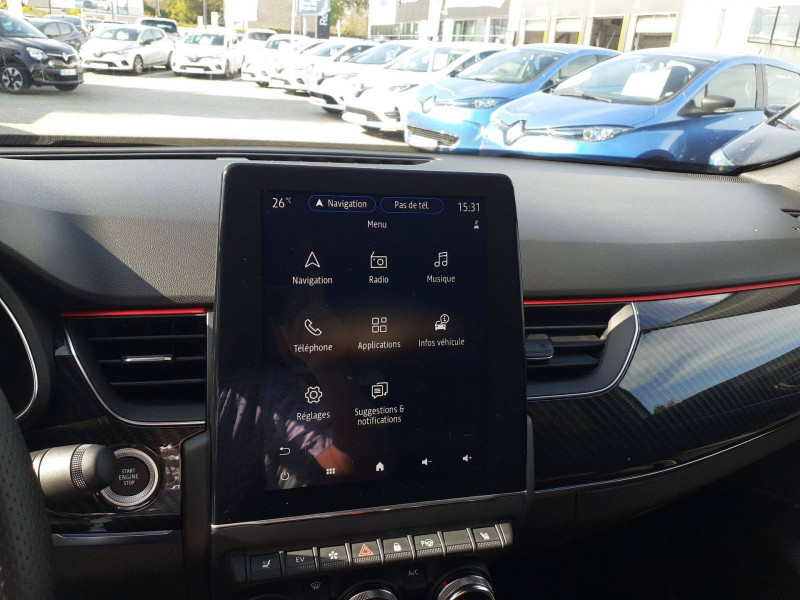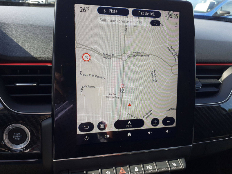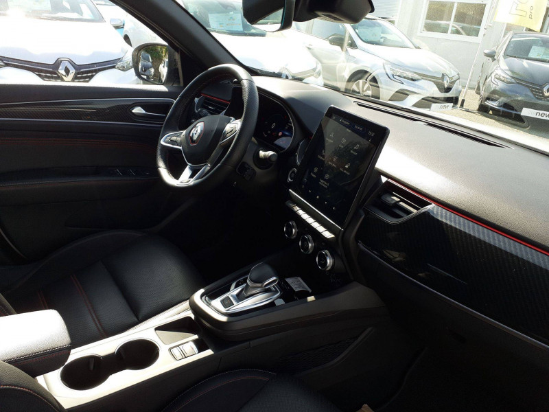 Alerte de survitesse combinéà la vitesse limite de la navigation: / Allumage automatique des phares et des essuis-glace avec capteur de pluie et de luminosité: / Avertisseur de sortie de stationnement: / Commutation automatique des feux de route/croisement: / Easy link avec écran tactile 9.3", navigation, réplication smartphone, Bluetooth: / Feux de jour à LED avec signature lumineuse C-Shape: / Jantes alliage 18" Silverstone diamantées exclusives R.S. Line avec insert Rouge: / Projecteurs AV full LED Pure Vision: / Volant cuir pleine fleur: / Alerte d'oubli de ceinture de sécurité: / Alerte de distance de sécurité: / Aérateurs aux places AR: / Banquette AR avec accoudoir central: / Boite de vitesse E shifter: / Boitier connect AIVC: / Bouton d'appel d'urgence R-Call: / Carte Renault avec accès et démarrage mains libres avec fermeture à l'éloignement: / Compartimentage de coffre: / Compartimentage de coffre: / Coques de rétroviseurs extérieures noires (avec Toit Noir): / Design exterieur RS-Line: / Design intérieur RS-Line: / Détecteur d'angle mort: / Détection d'obstacle latérale: / Easy Park Assist: / Eclairage d'ambiance: / Freinage actif d'urgence avec détection piétons et cyclistes: / Harmonie intérieure foncée: / Indicateur de changement de vitesse: / Kit de gonflage et de réparation des pneumatiques: / Lève-vitres AR électriques avec fonction anti-pincement: / Programme eco mode: / Purificateur d'air: / Renault Multi-sense: / Rétroviseur intérieur électrochrome sans contour: / Signature R.S. Line: / Système ISOFIX (i-Size) aux places AR (latérales): / Tableau de bord avec écran numérique couleur 7'': / Volant chauffant: / Sellerie mixte cuir-suédine surpiqués rouge: /