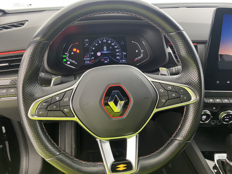 Alerte de survitesse combinéà la vitesse limite de la navigation: / Allumage automatique des phares et des essuis-glace avec capteur de pluie et de luminosité: / Avertisseur de sortie de stationnement: / Commutation automatique des feux de route/croisement: / Easy link avec écran tactile 9.3", navigation, réplication smartphone, Bluetooth: / Feux de jour à LED avec signature lumineuse C-Shape: / Jantes alliage 18" Silverstone diamantées exclusives R.S. Line avec insert Rouge: / Projecteurs AV full LED Pure Vision: / Volant cuir pleine fleur: / Alerte d'oubli de ceinture de sécurité: / Alerte de distance de sécurité: / Aérateurs aux places AR: / Banquette AR avec accoudoir central: / Boitier connect AIVC: / Bouton d'appel d'urgence R-Call: / Carte Renault avec accès et démarrage mains libres avec fermeture à l'éloignement: / Compartimentage de coffre: / Compartimentage de coffre: / Coques de rétroviseurs extérieures noires (avec Toit Noir): / Design exterieur RS-Line: / Design intérieur RS-Line: / Détecteur d'angle mort: / Détection d'obstacle latérale: / Easy Park Assist: / Eclairage d'ambiance: / Freinage actif d'urgence avec détection piétons et cyclistes: / Harmonie intérieure foncée: / Indicateur de changement de vitesse: / Kit de gonflage et de réparation des pneumatiques: / Lève-vitres AR électriques avec fonction anti-pincement: / Programme eco mode: / Purificateur d'air: / Renault Multi-sense: / Rétroviseur intérieur électrochrome sans contour: / Signature R.S. Line: / Système ISOFIX (i-Size) aux places AR (latérales): / Tableau de bord avec écran numérique couleur 7'': / Volant chauffant: / Sellerie mixte cuir-suédine surpiqués rouge: /