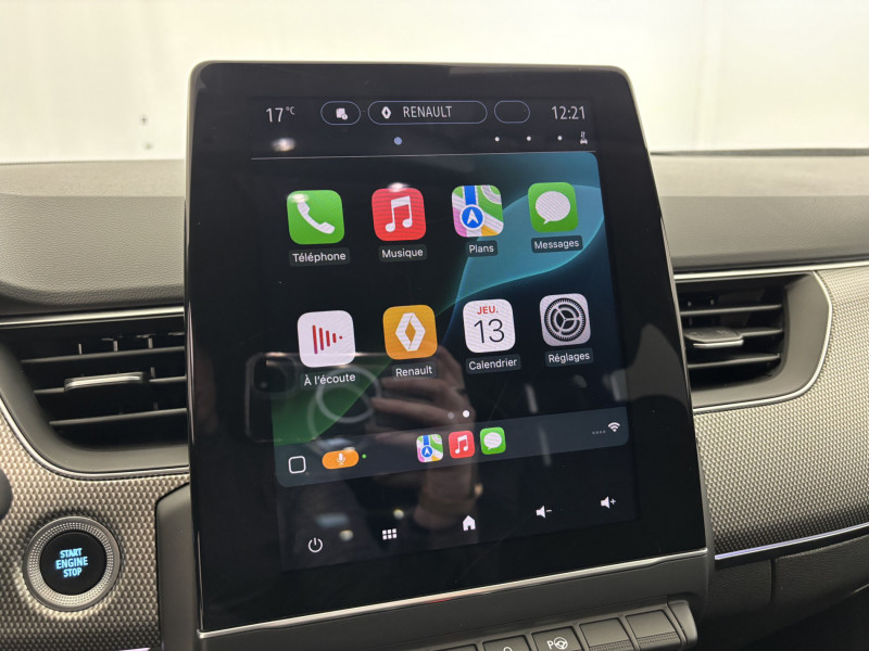 Aérateurs aux places AR / Alerte de distance de sécurité / Alerte de survitesse combinéà la vitesse limite de la navigation / Alerte d'oubli de ceinture de sécurité / Allumage automatique des phares et des essuis-glace avec capteur de pluie et de luminosité / Avertisseur de sortie de stationnement / Banquette AR avec accoudoir central / Boitier connect AIVC / Bouton d'appel d'urgence R-Call / Carte Renault avec accès et démarrage mains libres avec fermeture à l'éloignement / Commutation automatique des feux de route/croisement / Compartimentage de coffre / Compartimentage de coffre / Coques de rétroviseurs extérieures ton caisse / Easy link avec écran tactile 9.3", navigation, réplication smartphone, Bluetooth / Eclairage d'ambiance / Feux de jour à LED avec signature lumineuse C-Shape / Freinage actif d'urgence avec détection piétons et cyclistes / Harmonie intérieure foncée / Indicateur de changement de vitesse / Jantes alliage 18" Pasadena diamantées noires / Kit de gonflage et de réparation des pneumatiques / Lève-vitres AR électriques avec fonction anti-pincement / Programme eco mode / Projecteurs AV full LED Pure Vision / Purificateur d'air / Renault Multi-sense / Rétroviseur intérieur électrochrome / Sellerie textile enduit grainé-tissu Noir Titane / Système ISOFIX (i-Size) aux places AR (latérales) / Tableau de bord avec écran numérique couleur 7'' / Volant cuir pleine fleur /