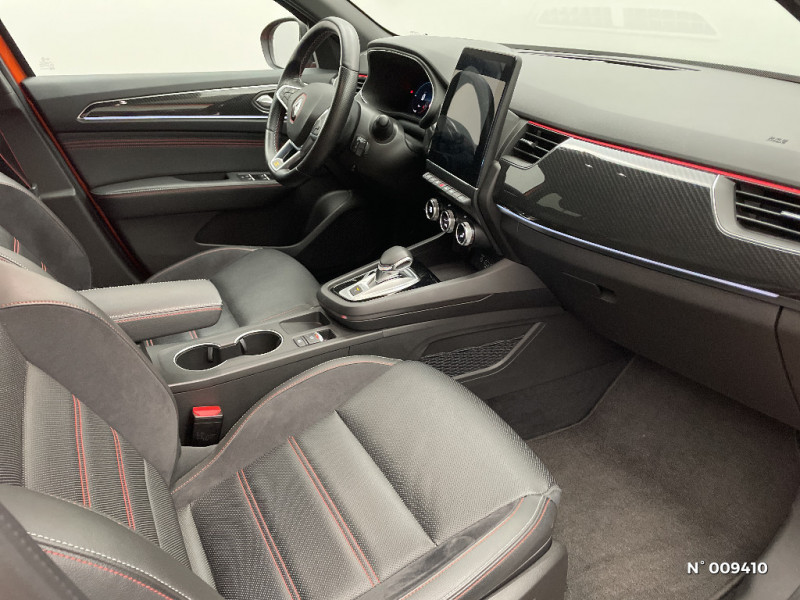 Banquette AR avec accoudoir central / Boite de vitesse E shifter / Boitier connect AIVC / Bouton d'appel d'urgence R-Call / Carte Renault avec accès et démarrage mains libres avec fermeture à l'éloignement / Cartographie France / Cartographie Standard / Aérateurs aux places AR / Alerte collision AR et freinage actif d'urgence AR piéton / Alerte de distance de sécurité / Alerte de survitesse combinéà la vitesse limite de la navigation / Alerte d'oubli de ceinture de sécurité / Sellerie mixte cuir-suédine surpiqués rouge / Signature R.S. Line / Système ISOFIX (i-Size) aux places AR (latérales) / Système ISOFIX (i-Size) aux places latérales AR et passager AV / Système multimédia EASY LINK avec écran tactile 9,3", navigation, Bluetooth / Tableau de bord avec écran numérique couleur 7'' / Volant chauffant / Volant cuir pleine fleur / Rétroviseur intérieur électrochrome sans contour / Commutation automatique des feux de route/croisement / Compartimentage de coffre / Compartimentage de coffre / Coques de rétroviseurs extérieures noires (avec Toit Noir) / Design exterieur RS-Line / Design intérieur RS-Line / Détection d'obstacle latérale / Easy link avec écran tactile 9.3", navigation, réplication smartphone, Bluetooth / Easy Park Assist / Eclairage d'ambiance / Feux de jour à LED avec signature lumineuse C-Shape / Freinage actif d'urgence avec détection piétons et cyclistes / Harmonie intérieure foncée / Indicateur de changement de vitesse / Jantes alliage 18" Silverstone diamantées exclusives R.S. Line avec insert Rouge / Kit de gonflage et de réparation des pneumatiques / Lève-vitres AR électriques avec fonction anti-pincement / Monte banalisée / Pneu standard / Programme eco mode / Projecteurs AV full LED Pure Vision / Purificateur d'air / Renault Multi-sense / Allumage automatique des phares et des essuis-glace avec capteur de pluie et de luminosité / Appellation Renault / Avertisseur de sortie de stationnement