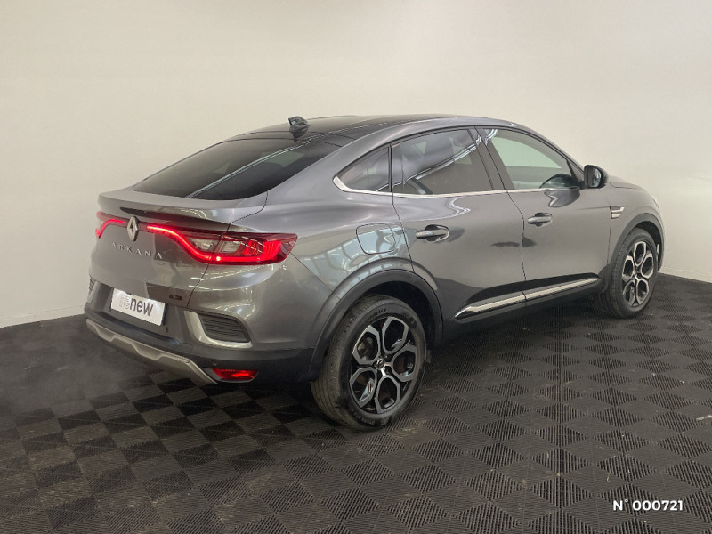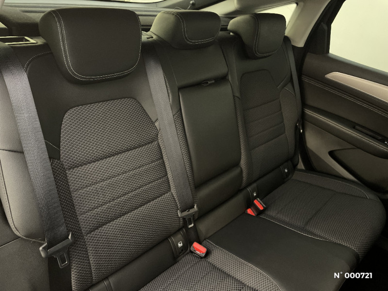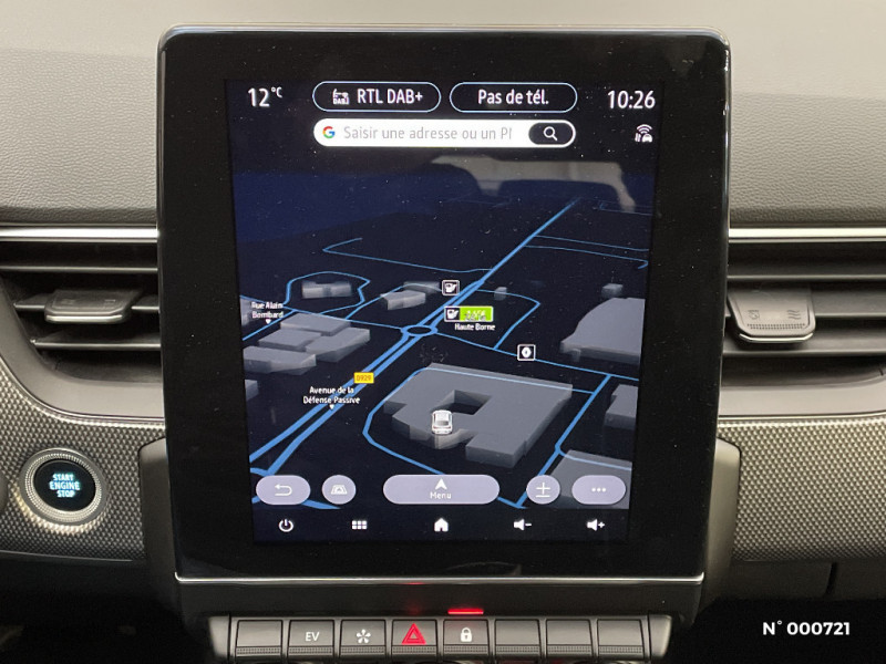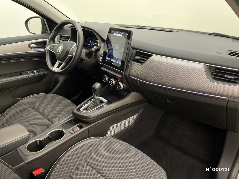 Coques de rétroviseurs ton caisse / Peinture opaque / Indicateur de changement de vitesse / Eclairage d'ambiance / Alerte Distance Sécurité / Alerte d'oubli de ceinture de sécurité / Banquette AR avec accoudoir central / Compartimentage de coffre / Projecteurs AV full LED Pure Vision / Commutation automatique des feux de route/croisement / Kit de gonflage et de réparation des pneumatiques / Harmonie foncé / Carte Renault avec accès et démarrage mains libres avec fermeture à l'éloignement / Renault Multi-sense / Allumage automatique des phares et des essuis-glace avec capteur de pluie et de luminosité / Avertisseur de sortie de stationnement / Feux de jour à LED avec signature lumineuse C-Shape / Programme eco mode / Aérateurs aux places AR / Lève-vitres AR électriques avec fonction anti-pincement / Purificateur d'air / Freinage actif d'urgence avec détection piétons et cyclistes / Bouton d'appel d'urgence R-Call / Volant gainé en similicuir Soft Touch / Boitier connect AIVC / Tableau de bord avec écran numérique et personnalisable 10" / Sellerie similicuir-tissu Noir Titane / Easy link avec écran tactile 9.3", navigation, réplication smartphone, Bluetooth / Réhomologation E-Tech / Volant non chauffant / Système ISOFIX (i-Size) aux places AR (latérales) / Alerte de survitesse combinéà la vitesse limite de la navigation / Compatibilité Apple CarPlay Wifi / Frein de parking électrique avec fonction Auto-Hold / Jantes alliage 18" Pasadena diamantées noires / Rétroviseur intérieur électrochrome