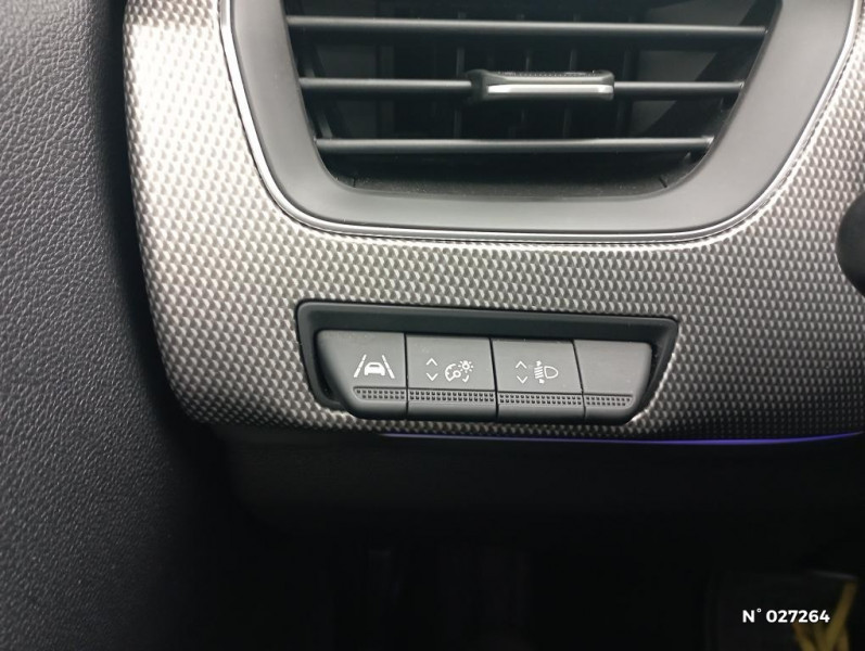 Programme eco mode / Feux de jour à LED avec signature lumineuse C-Shape / Aérateurs aux places AR / Lève-vitres AR électriques avec fonction anti-pincement / Purificateur d'air / Jantes alliage 18" Pasadena diamantées noires / Alerte Distance Sécurité / Alerte d'oubli de ceinture de sécurité / Banquette AR avec accoudoir central / Compartimentage de coffre / Projecteurs AV full LED Pure Vision / Commutation automatique des feux de route/croisement / Kit de gonflage et de réparation des pneumatiques / Harmonie foncé / Carte Renault avec accès et démarrage mains libres avec fermeture à l'éloignement / Freinage actif d'urgence avec détection piétons et cyclistes / Bouton d'appel d'urgence R-Call / Volant gainé en similicuir Soft Touch / Boitier connect AIVC / Tableau de bord avec écran numérique et personnalisable 10" / Sellerie similicuir-tissu Noir Titane / Easy link avec écran tactile 9.3", navigation, réplication smartphone, Bluetooth / Système ISOFIX (i-Size) aux places AR (latérales) / Alerte de survitesse combinéà la vitesse limite de la navigation / Compatibilité Apple CarPlay Wifi / Frein de parking électrique avec fonction Auto-Hold / Renault Multi-sense / Allumage automatique des phares et des essuis-glace avec capteur de pluie et de luminosité / Avertisseur de sortie de stationnement / Rétroviseur intérieur électrochrome / Coques de rétroviseurs ton caisse / Indicateur de changement de vitesse / Eclairage d'ambiance