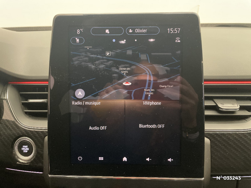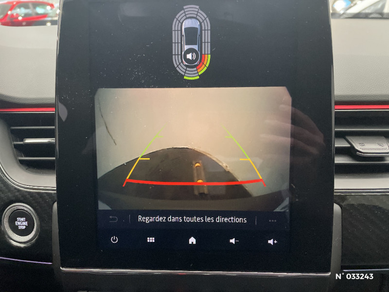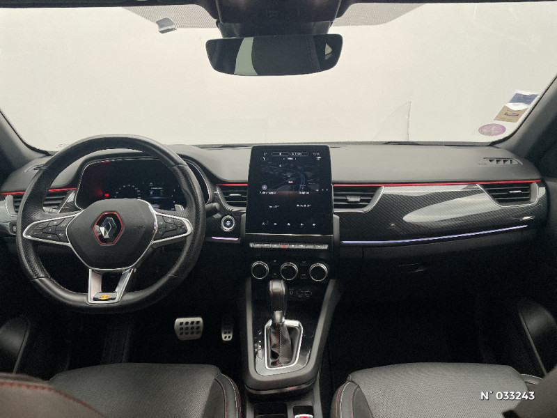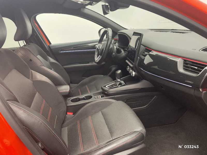 Cartographie France / Cartographie Standard / Système multimédia EASY LINK avec écran tactile 9,3", navigation, Bluetooth / Jantes alliage 18" Silverstone diamantées exclusives R.S. Line avec insert Rouge / Boitier connect AIVC / Aérateurs aux places AR / Freinage actif d'urgence avec détection piétons et cyclistes / Bouton d'appel d'urgence R-Call / Sellerie mixte cuir-suédine surpiqués rouge / Signature R.S. Line / Volant cuir pleine fleur / Projecteurs AV full LED Pure Vision / Easy Park Assist / Commutation automatique des feux de route/croisement / Tableau de bord avec écran numérique et personnalisable 10" / Kit de gonflage et de réparation des pneumatiques / Harmonie foncé / Système ISOFIX (i-Size) aux places latérales AR et passager AV / Design exterieur RS-Line / Design intérieur RS-Line / Pneu standard / Renault Multi-sense / Alerte collision AR et freinage actif d'urgence AR piéton / Allumage automatique des phares et des essuis-glace avec capteur de pluie et de luminosité / Avertisseur de sortie de stationnement / Détection d'obstacle latérale / Feux de jour à LED avec signature lumineuse C-Shape / Monte banalisée / Programme eco mode / Rétroviseur intérieur électrochrome sans contour / Lève-vitres AR électriques avec fonction anti-pincement / Purificateur d'air / Coques de rétroviseurs extérieures noires (avec Toit Noir) / Peinture opaque / Indicateur de changement de vitesse / Eclairage d'ambiance / Alerte Distance Sécurité / Alerte d'oubli de ceinture de sécurité / Banquette AR avec accoudoir central / Compartimentage de coffre / Appellation Renault