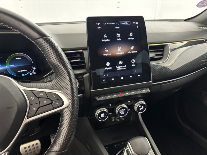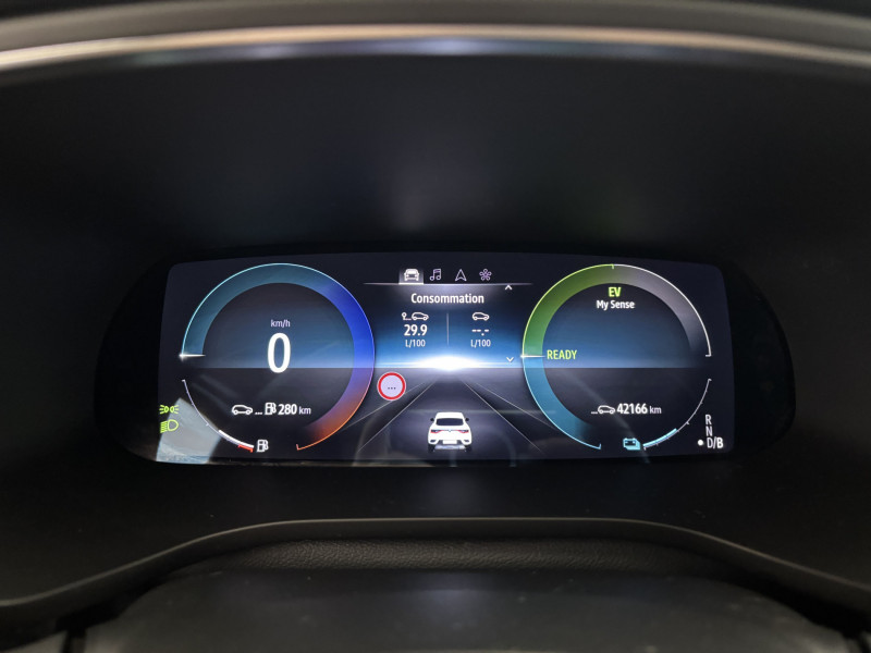 Aérateurs aux places AR / Alerte de distance de sécurité / Alerte de survitesse combinéà la vitesse limite de la navigation / Alerte d'oubli de ceinture de sécurité / Allumage automatique des phares et des essuis-glace avec capteur de pluie et de luminosité / Avertisseur de sortie de stationnement / Banquette AR avec accoudoir central / Boite de vitesse E shifter / Boitier connect AIVC / Bouton d'appel d'urgence R-Call / Carte Renault avec accès et démarrage mains libres avec fermeture à l'éloignement / Commutation automatique des feux de route/croisement / Compartimentage de coffre / Compartimentage de coffre / Compatibilité Apple CarPlay Wifi / Coques de rétroviseurs extérieures noires / Détection d'obstacle latérale / Easy link avec écran tactile 9.3", navigation, réplication smartphone, Bluetooth / Easy Park Assist / Eclairage d'ambiance / Feux de jour à LED avec signature lumineuse C-Shape / Freinage actif d'urgence avec détection piétons et cyclistes / Frein de parking électrique avec fonction Auto-Hold / Harmonie intérieure foncée / Indicateur de changement de vitesse / Jantes alliage 18" silverstone diamantées avec insert gold / Kit de gonflage et de réparation des pneumatiques / Lame F1 Golf / Lève-vitres AR électriques avec fonction anti-pincement / Programme eco mode / Projecteurs AV full LED Pure Vision / Purificateur d'air / Réhomologation E-Tech / Renault Multi-sense / Rétroviseur intérieur électrochrome sans contour / Sellerie cuir/suédine E-Tech engineered avec surpiqûres gold / Système ISOFIX (i-Size) aux places AR (latérales) / Tableau de bord avec écran numérique et personnalisable 10" / Volant chauffant / Volant cuir pleine fleur /