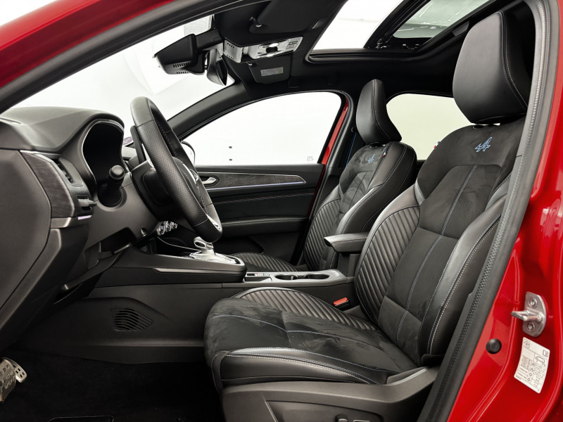 Aérateurs aux places AR / Alerte de distance de sécurité / Alerte de survitesse combinéà la vitesse limite de la navigation / Allumage automatique des phares et des essuis-glace avec capteur de pluie et de luminosité / Avertisseur de sortie de stationnement / Banquette AR avec accoudoir central / Boitier connect AIVC / Bouton d'appel d'urgence R-Call / Carte Renault avec accès et démarrage mains libres avec fermeture à l'éloignement / Centrage dans la voie (active driver assist) / Ciel de toit noir / Commutation automatique des feux de route/croisement / Console centrale avec levier de vitesse e-shifter / Coques de rétroviseurs extérieures noires / Design esprit Alpine extérieur / Design esprit Alpine intérieur / Double canule d'échappement noir brillant / Eclairage d'ambiance / Feux de jour à LED avec signature lumineuse C-Shape / Freinage actif d'urgence avec détection piétons et cyclistes / Frein de parking électrique avec fonction Auto-Hold / Harmonie intérieure foncée / Indicateur de changement de vitesse / Jantes alliage 19" esprit Alpine / Kit de gonflage et de réparation des pneumatiques / Lame métallique sur bouclier AV inspirée de l'univers de la Formule 1 / Lève-vitres AR électriques avec fonction anti-pincement / Plancher de coffre amovible / Programme eco mode / Projecteurs AV full LED Pure Vision / Purificateur d'air / Renault Multi-sense / Rétroviseur intérieur électrochrome sans contour / Sans rangement de coffre / Sellerie mixte textile enduit grainé - suédine avec surpiqures esprit Alpine / Sièges AV électriques avec réglage en hauteur, siège conducteur avec réglage lombaire / Système ISOFIX (i-Size) aux places AR (latérales) / Système multimédia easy link connecté avec écran tactile 9,3, radio DAB, navigation embarquée / Tableau de bord avec écran numérique et personnalisable 10" / Volant textile enduit grainé perforé chauffant /