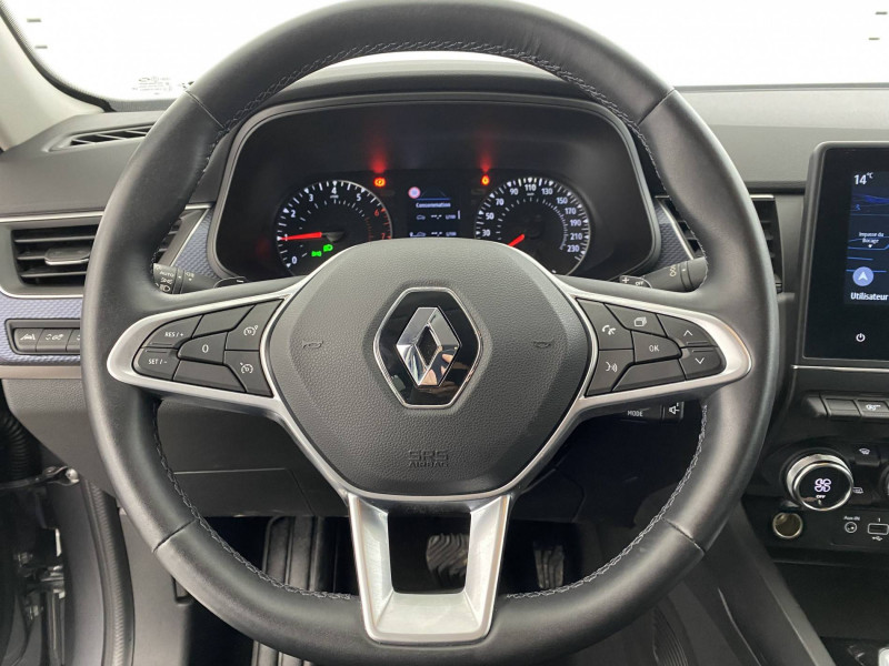 Aérateurs aux places AR / Alerte de distance de sécurité / Alerte de survitesse combinéà la vitesse limite de la navigation / Alerte d'oubli de ceinture de sécurité / Allumage automatique des phares et des essuis-glace avec capteur de pluie et de luminosité / Boitier connect AIVC / Bouton d'appel d'urgence R-Call / Carte Renault avec accès et démarrage mains libres avec fermeture à l'éloignement / Commutation automatique des feux de route/croisement / Compartimentage de coffre / Compartimentage de coffre / Compatibilité Apple CarPlay Wifi / Coques de rétroviseurs extérieures ton caisse / Feux de jour à LED avec signature lumineuse C-Shape / Freinage actif d'urgence avec détection piétons et cyclistes / Harmonie intérieure foncée / Indicateur de changement de vitesse / Jantes alliage 17" Bahamas diamantées noires / Kit de gonflage et de réparation des pneumatiques / Lève-vitres AR électriques avec fonction anti-pincement / Navigation embarquée avec cartographie Europe / Programme eco mode / Projecteurs AV full LED Pure Vision / Purificateur d'air / Sellerie tissu Noir Titane / Système ISOFIX (i-Size) aux places AR (latérales) / Tableau de bord avec écran couleur 4,2'' et compteurs analogiques / Volant gainé en textile enduit grainé Soft Touch /